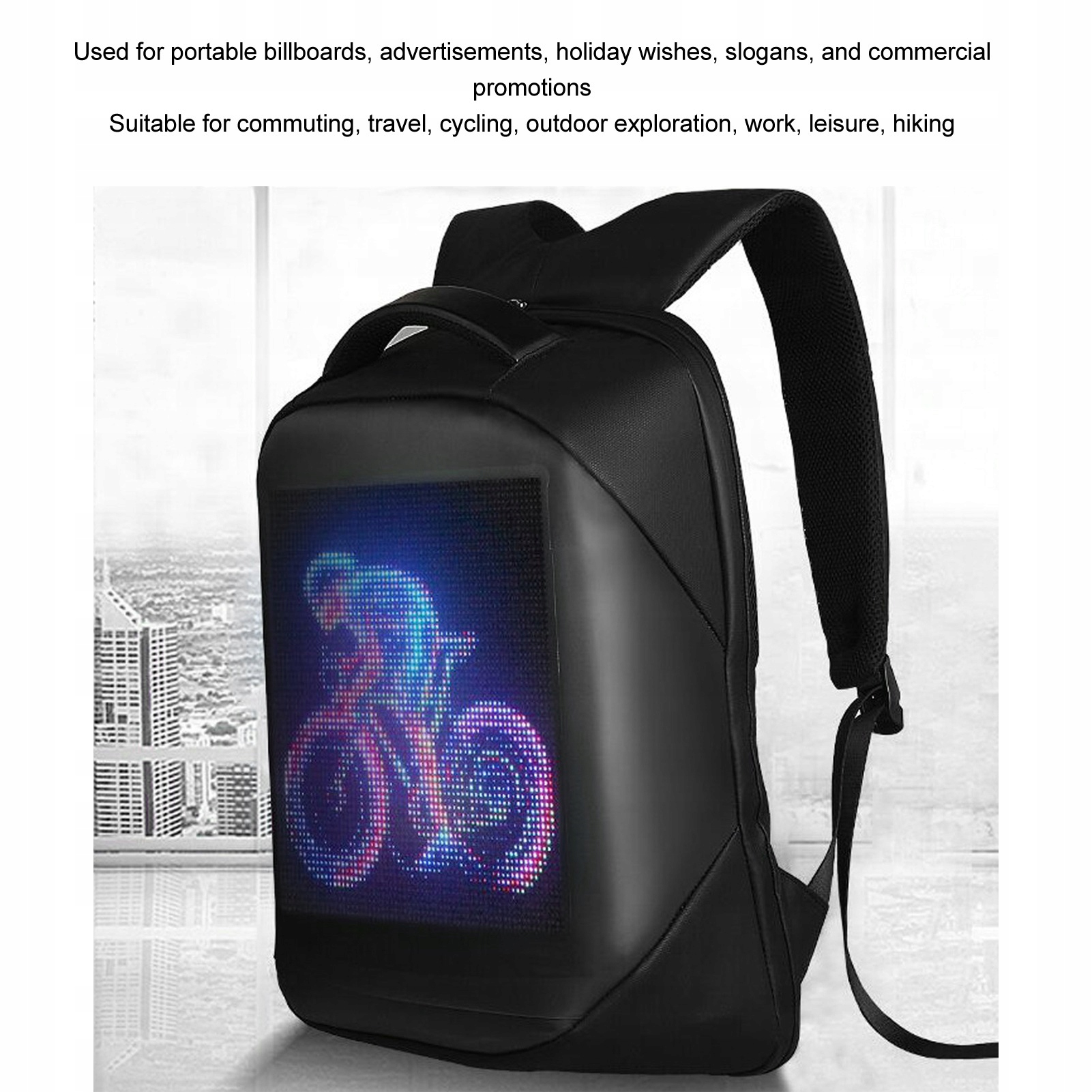 1. [Повнокольоровий світлодіодний дисплей] Цей рюкзак має повнокольоровий світлодіод, який можна запрограмувати через мобільну програму через з’єднання Bluetooth, що полегшує налаштування.