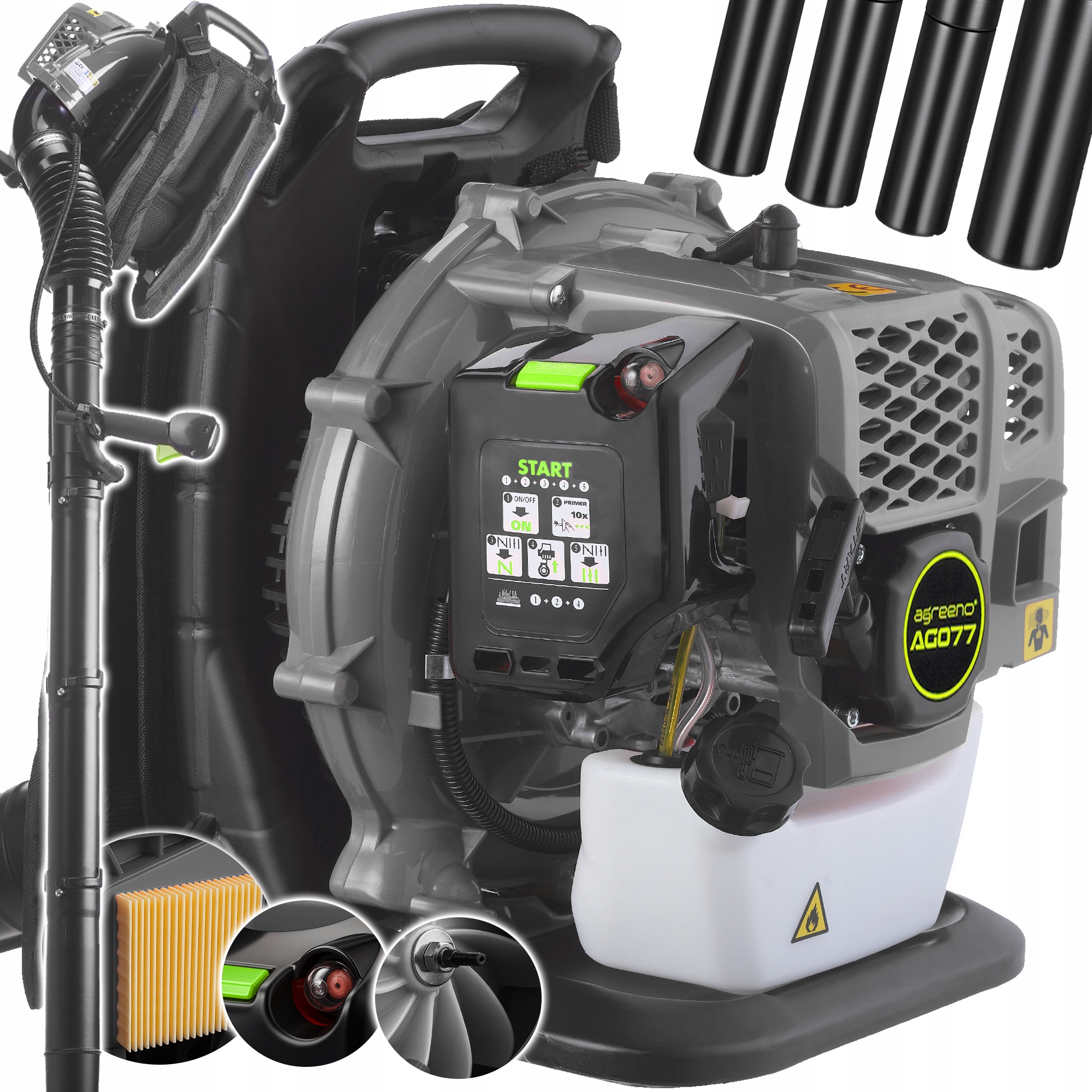 РЮЗКАЧНА БЕНЗИНОВА ПОДУВОДУВКА 370км/год 24м3/хв LEAVES Garden AGREENO AG077