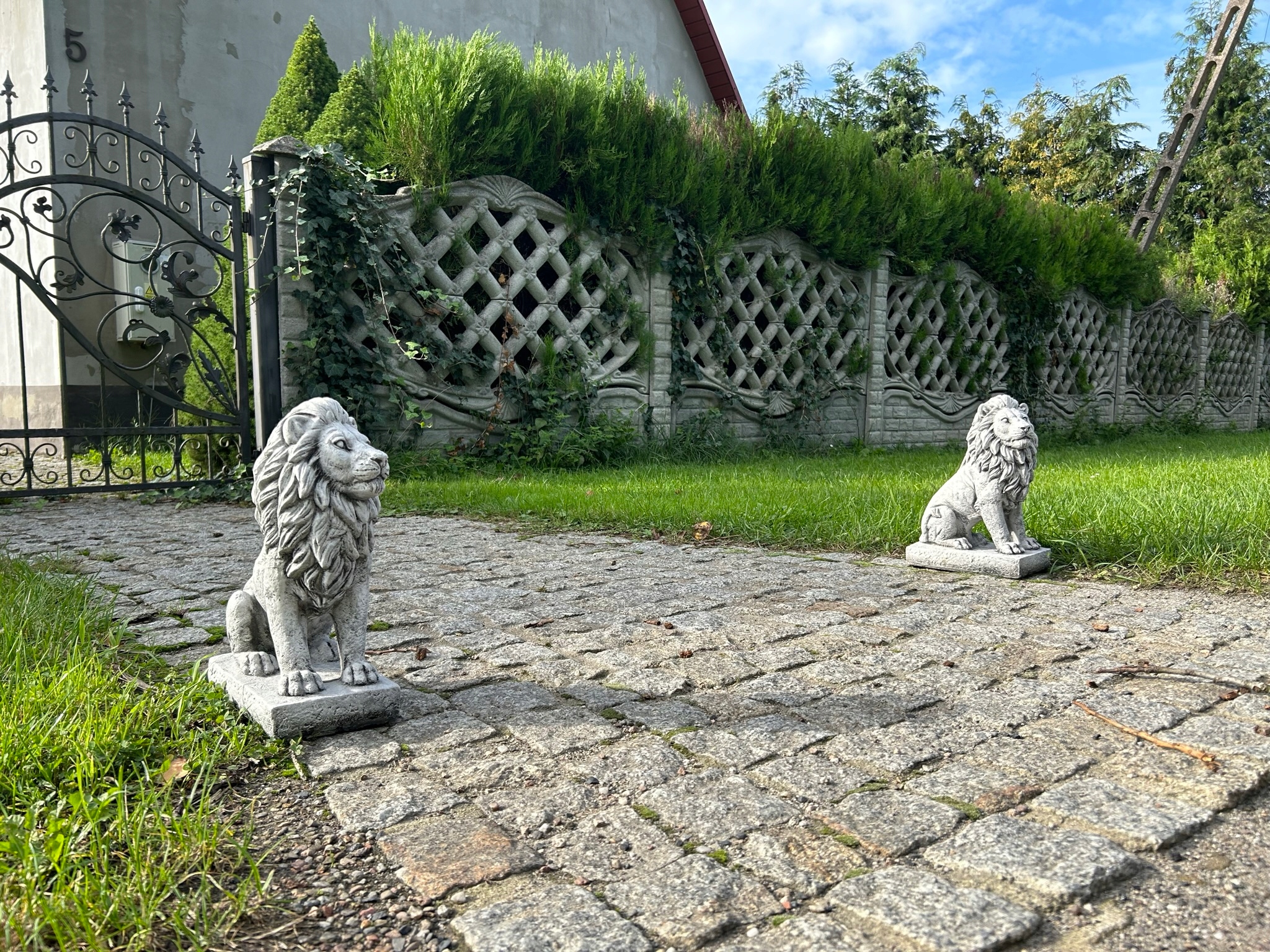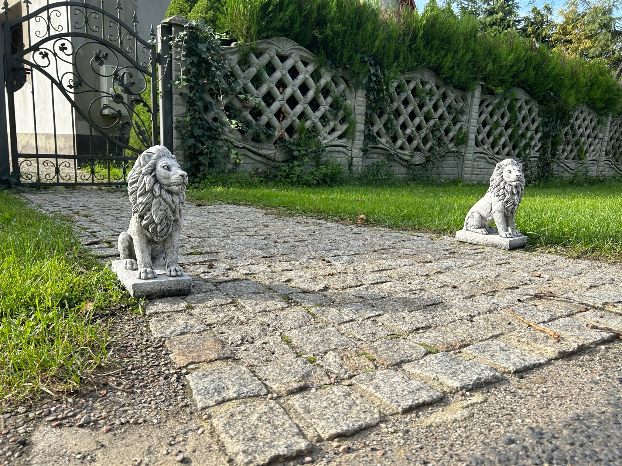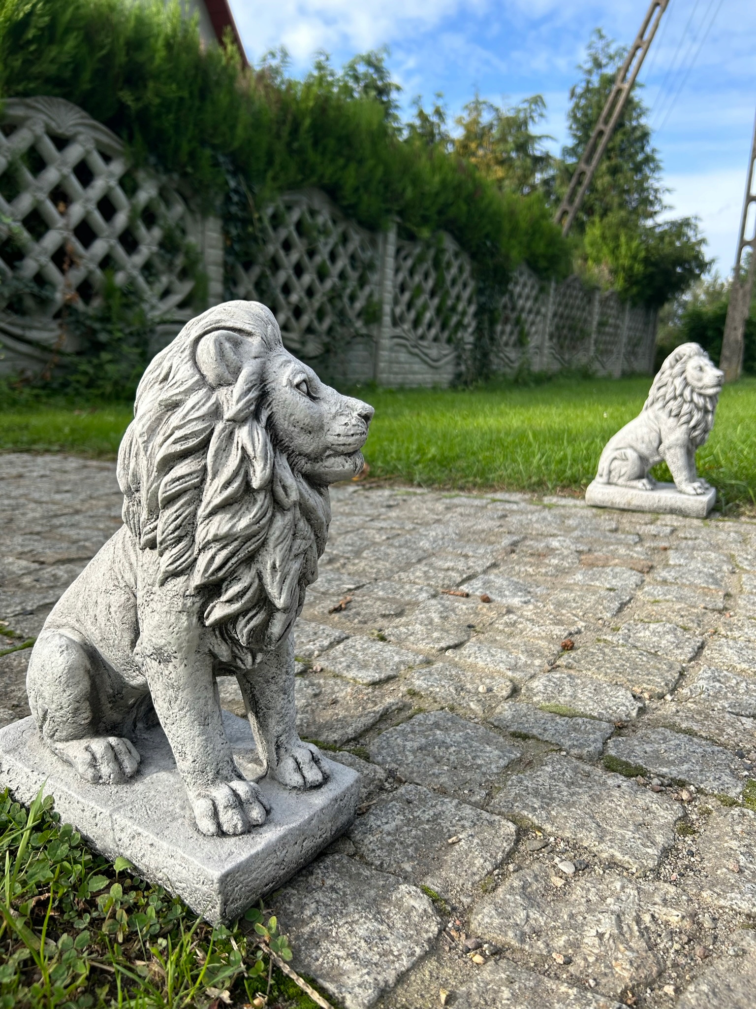 RZEŹBA BETONOWA LWY NA PODSTAWIE ZESTAW LEWY I PRAWY FIGURY OGRODOWE
