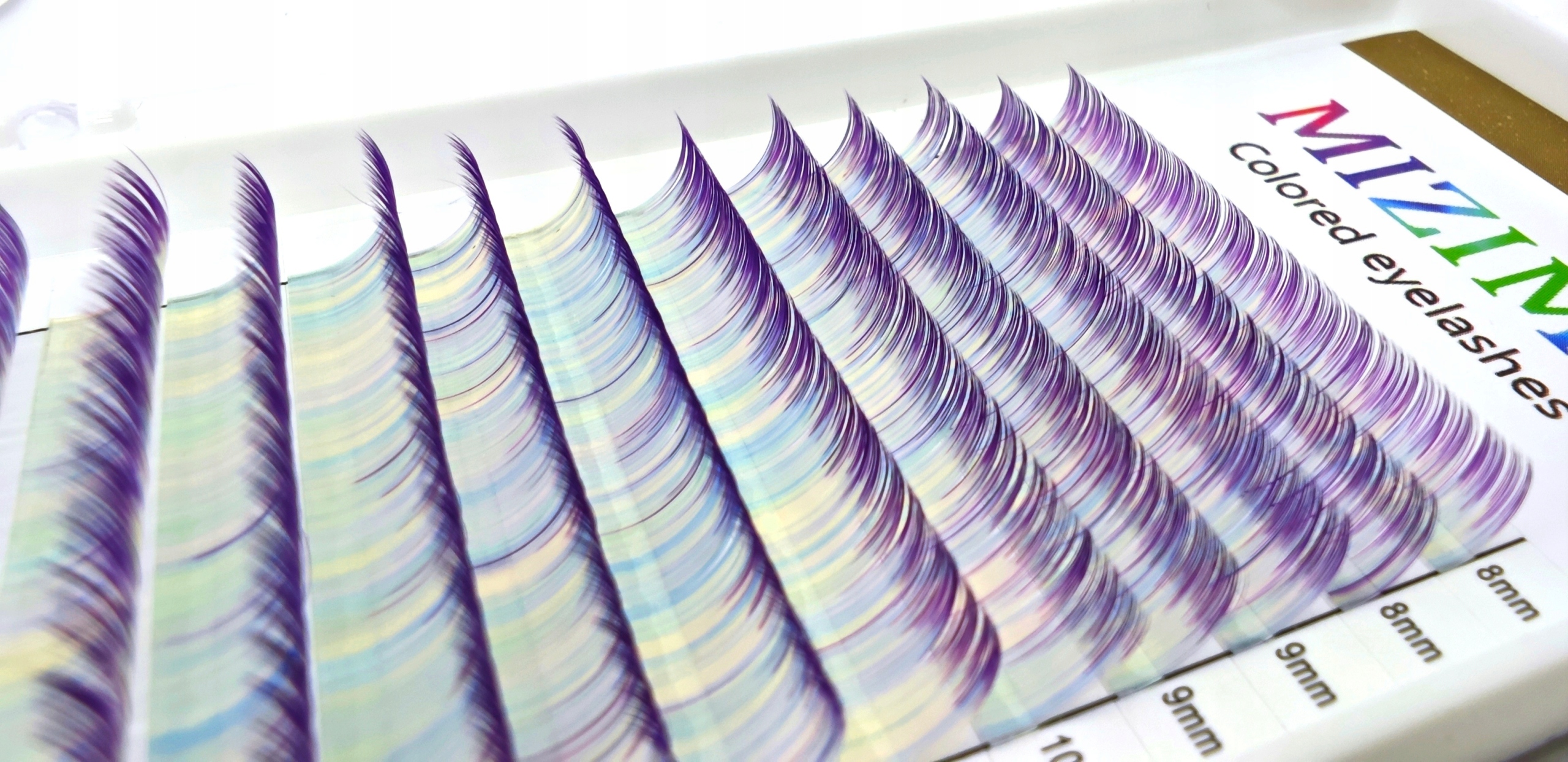 Rzęsy Kolorowe 8-13mm curl D, PASTELOWO-FIOLETOWE