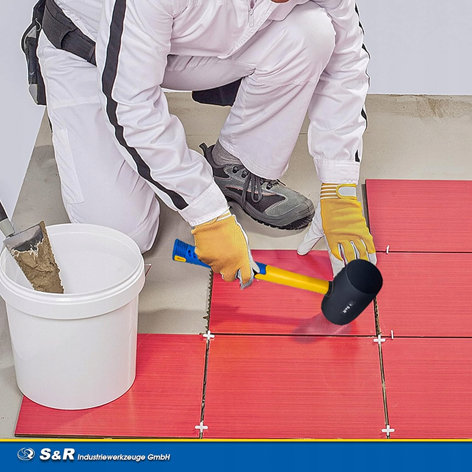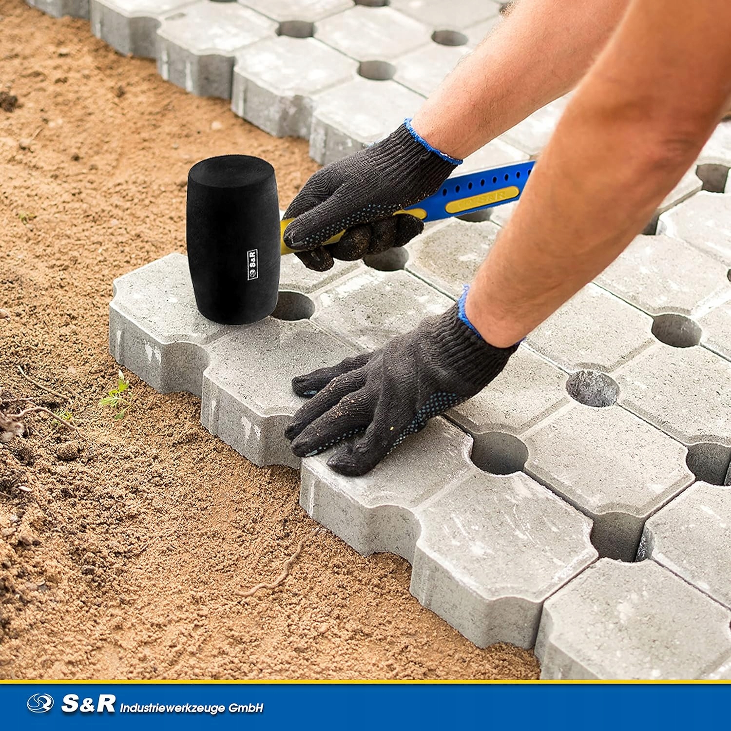 Гумовий молоток S&R Black 560 г, виготовлений з натурального каучуку з неслизькою рукояткою зі скловолокна, діаметр = 60 мм, ніжний молоток для зовнішніх робіт, наприклад, бруківка, клінкер, плитка,