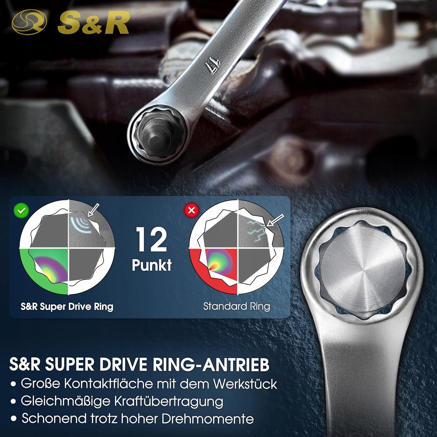 S&R набір гайкових ключів з плоскою кишені, 6-22 мм, надійний набір комбінованих клавіш з головної серії для високопродуктивних додатків у промисловості та промисловості