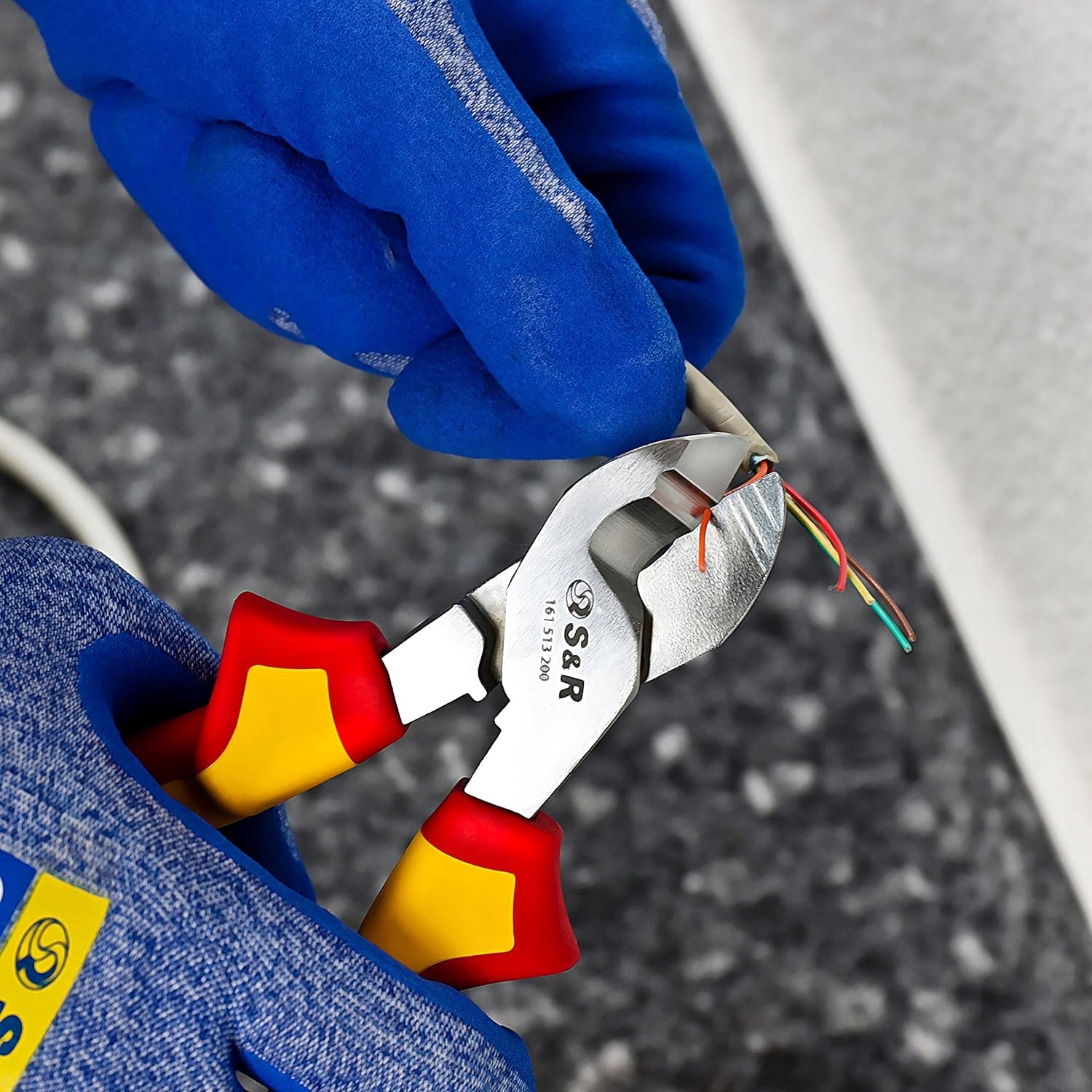 кабелі S&R VDE до 1000 В, 200 мм, високоякісна сталь 70C, 66 HRC Твердість, професійний кабель для електриків, складання, майстерня, з 2-компонентними ергономічними