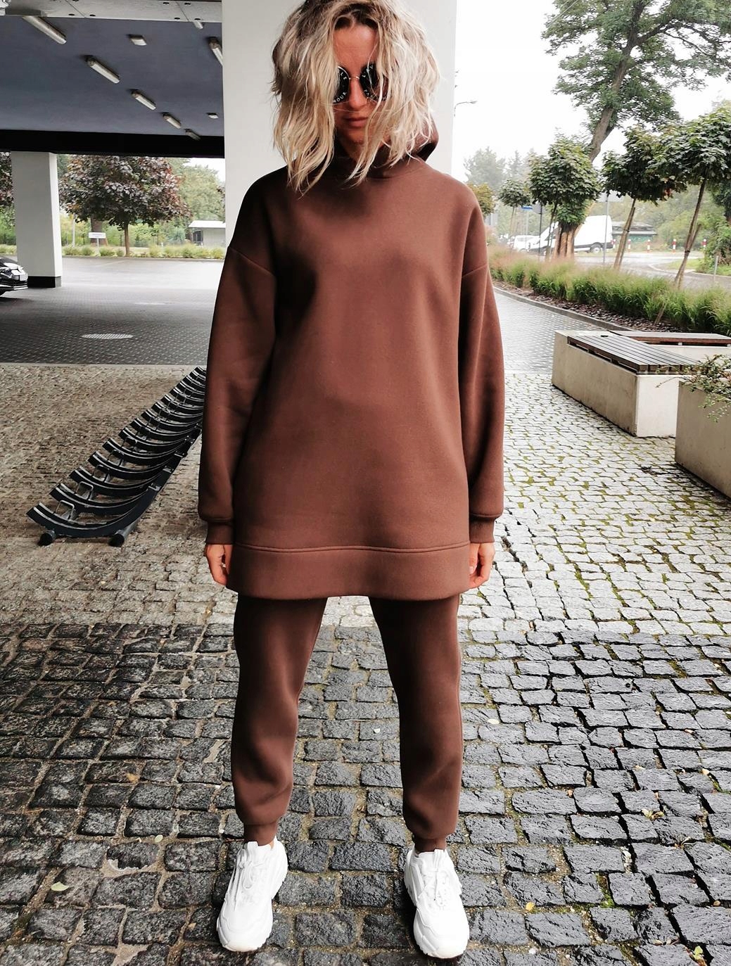 S030 ТЕПЛИЙ ШОКОЛАД З ДОВГИМ СВІТШОТОМ OVERSIZE