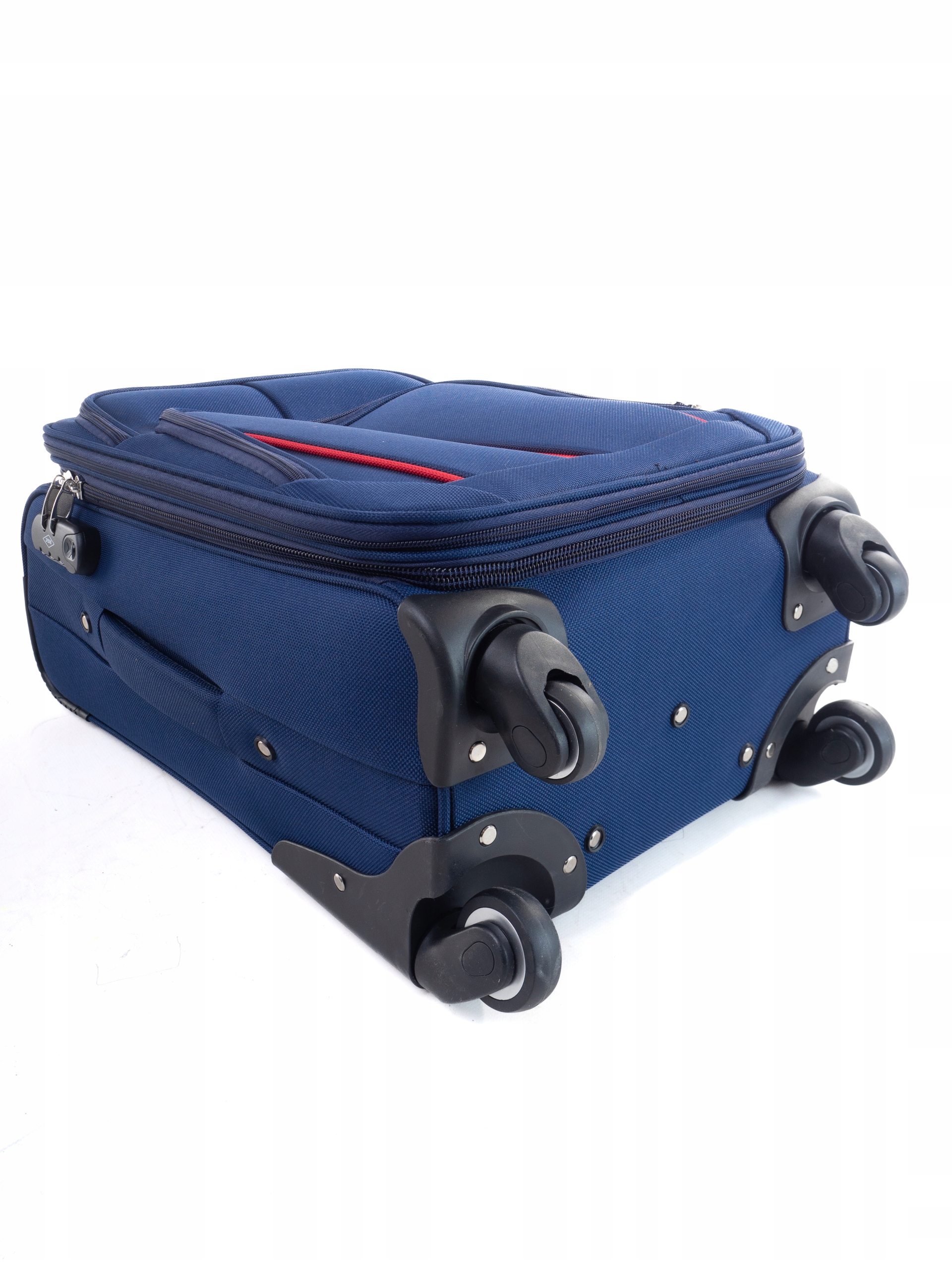 MAŁA L S-010 - лінія розкішних валіз з матеріалу codura 9700D. Матеріал неймовірно міцний, міцний, водонепроникний, а завдяки внутрішній структурі - дуже легкий. Валізи також прикрашені незліченною кількістю характерних заклепок. Все це встановлено на чотирьох поворотних гумових колесах із шарикопідшипниками
