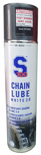 Перед використанням добре струснути. Обережно нанесіть спрей S100WeissesKetten на внутрішню частину чистого та сухого ланцюга. Залиште висихати приблизно на півгодини або на ніч.