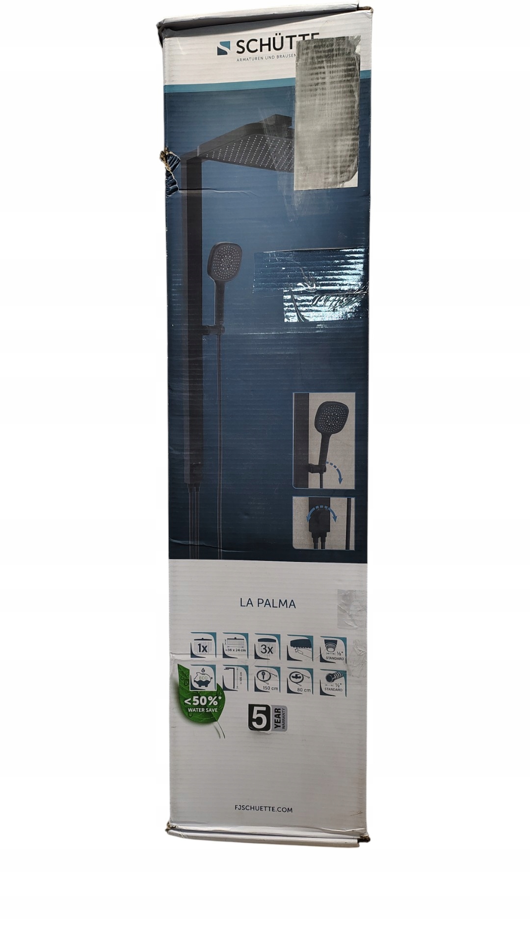 - Обсяг: верхній душ (360 x 240 мм), ручний душ (120 x 260 мм), душова штанга, душовий шланг прибл. 150 см, з’єднувальний шланг прибл. 80 см, інструкція по збірці.