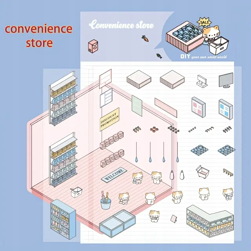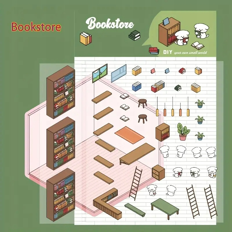 На інших моїх аукціонах, інші конструкції наклейок проти стреса: пральня, продуктовий магазин, пекарня, домашнє господарство/зустріч у бібліотеці, кутовий магазин/магазин на розі та багато інших.