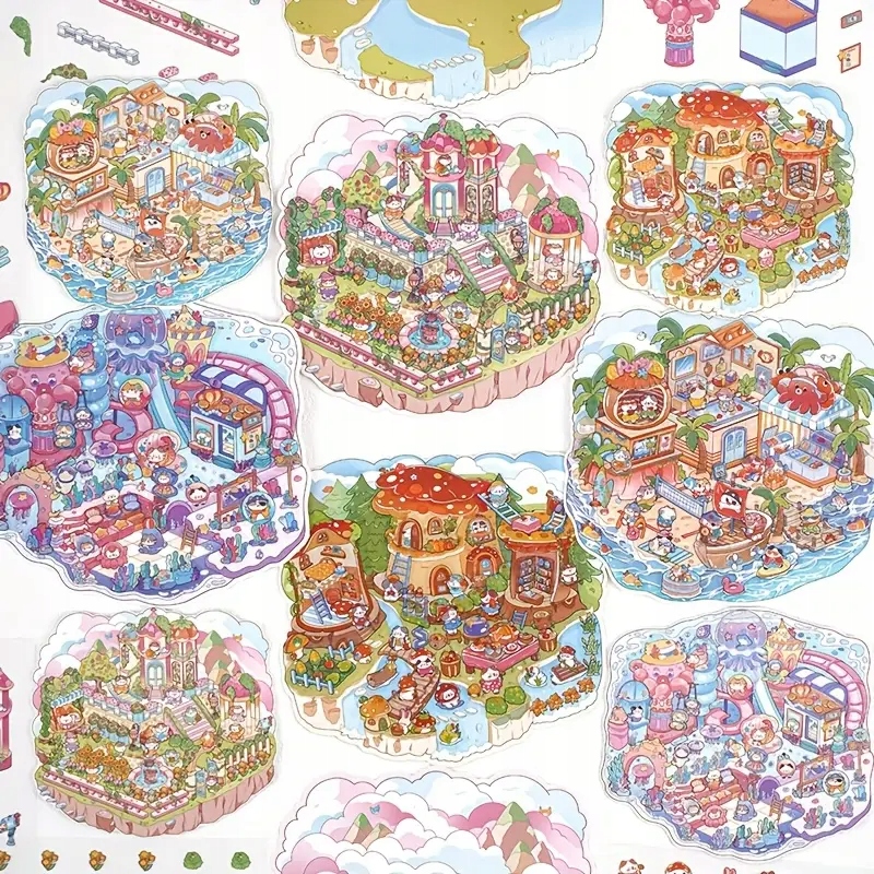 3D наклейки DIY Anti -stress розслабитися -dreamland koci paradise, міні -світ домашніх тварин.