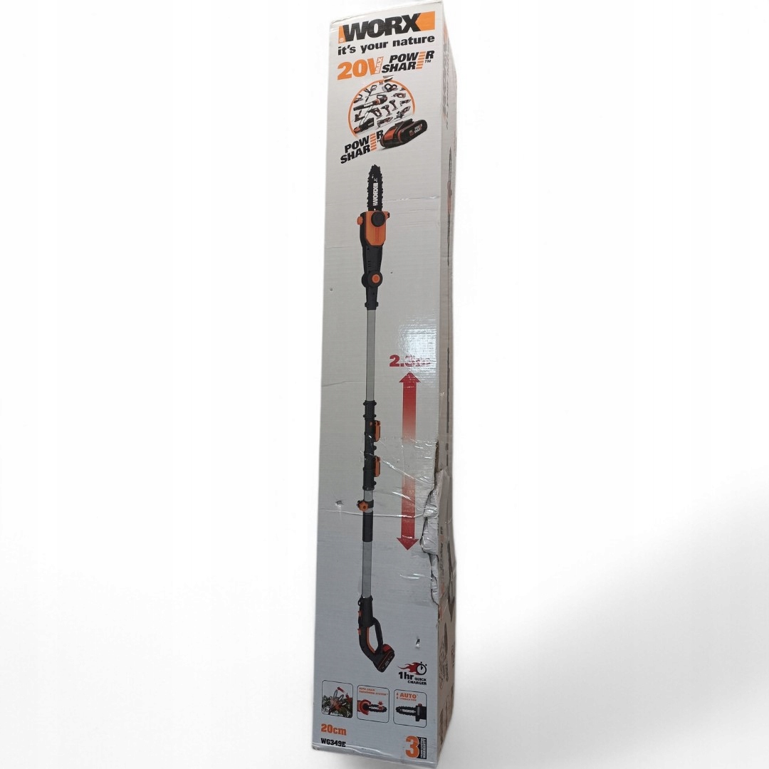 Капелярна ланцюгова пила на WG349E Worx Boom - це інструмент, призначений для зручного та ефективного пилку високо розташованих гілок. SAW є частиною системи PowerShare, що означає, що вона працює від літій-іонного акумулятора 20 В, яка також відповідає іншим інструментам у цій серії. Пристрій має автоматичну систему ланцюга та змащення. Завдяки суглобі в кінці буму можна перемістити положення робочої частини і легше дістатися до того, щоб досягти місця. Характеристики продукту