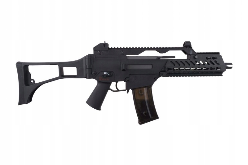 Specna Arms представляє лінійку реплік серіїG. Репліка, як і в оригіналі, виготовлена з дуже міцного пластику, металу, а в найкритичніших місцях зі сталі (всі гвинти, штифти і ручка тактичної підвіски виготовлені зі сталі). Репліка оснащена передньою рейкою RIS діаметром 22 мм (зверху і знизу) і кріпленням Keymod (з боків). Корпус виготовлений із пластику і має серійний номер, маркування виробника та естетичні позначки селектора вогню. Задня частина репліки має класичну транспортувальну рукоятку з 22-мм рейкою RIS і регульованими фіксованими прицільними пристосуваннями. Репліка також має складний приклад, що полегшує транспортування та роботу в тісних приміщеннях будівель. Металевий ствол копії оздоблений полум’ягасником, встановленим на різьбі CCW 14 мм.