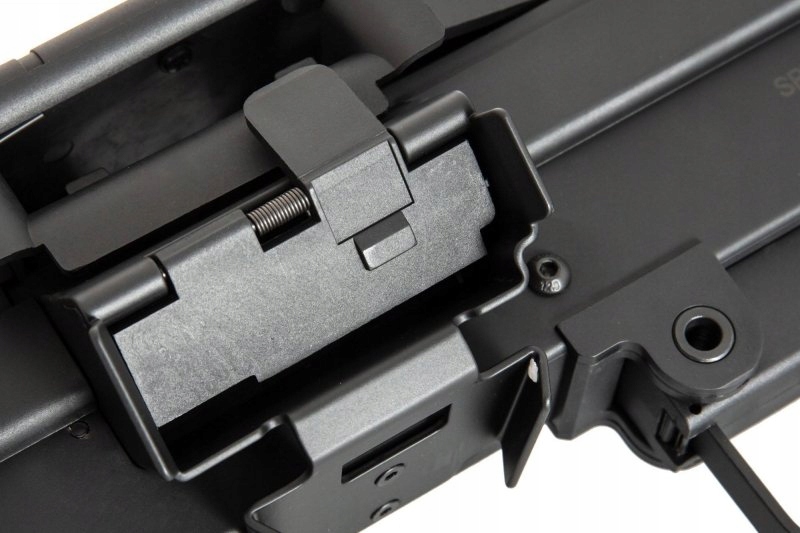 Система швидкої заміни пружиниESA™, яка використовується в гвинтівці, дозволяє швидко й ефективно регулювати потужність копії відповідно до очікуваних умов на ігровому полі без необхідності мати доступ до майстерні або ряд спеціалізованих інструментів. Сам процес заміни основної пружини займає буквально кілька секунд - достатньо демонтувати одну цапфу, відкинути шток і вийняти напрямну з пружиною через отвір в рамі коробки передач.