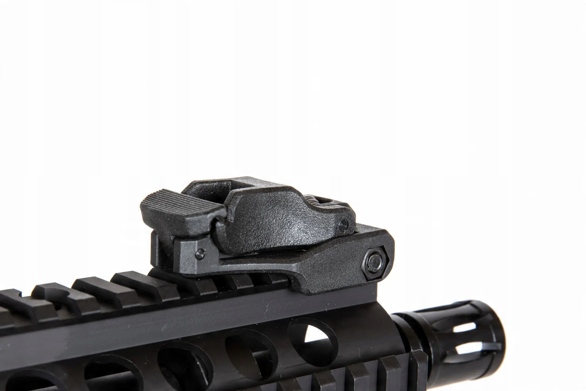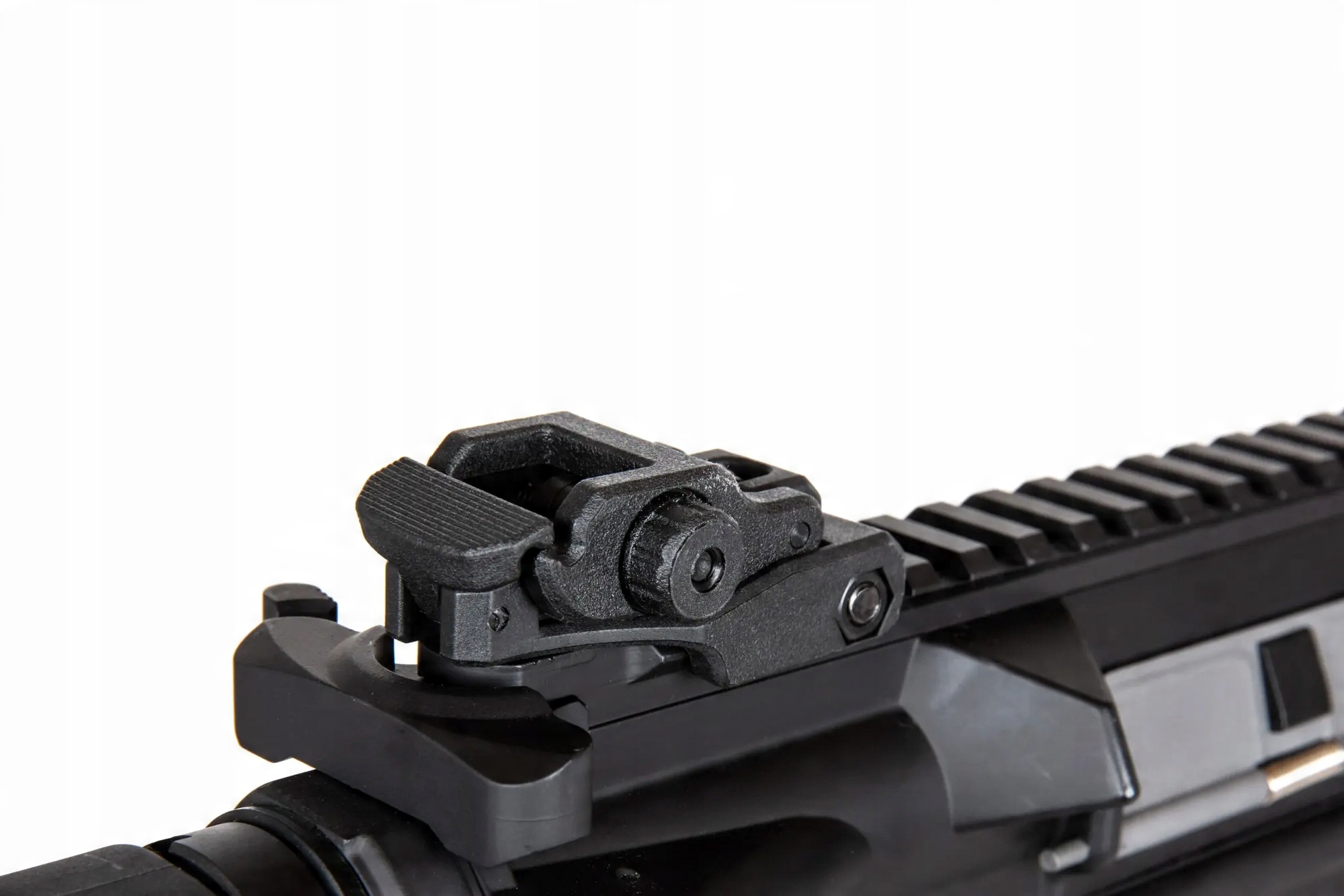 Репліка карабіна SA-E06 оснащена передня вільно плаваюча рейка в системі кріплення 22 мм RIS. Окрім довгої верхньої рейки RIS, на якій розміщені відкидні приціли, репліка має коротку рейки під стовбуром і з боків рейки .