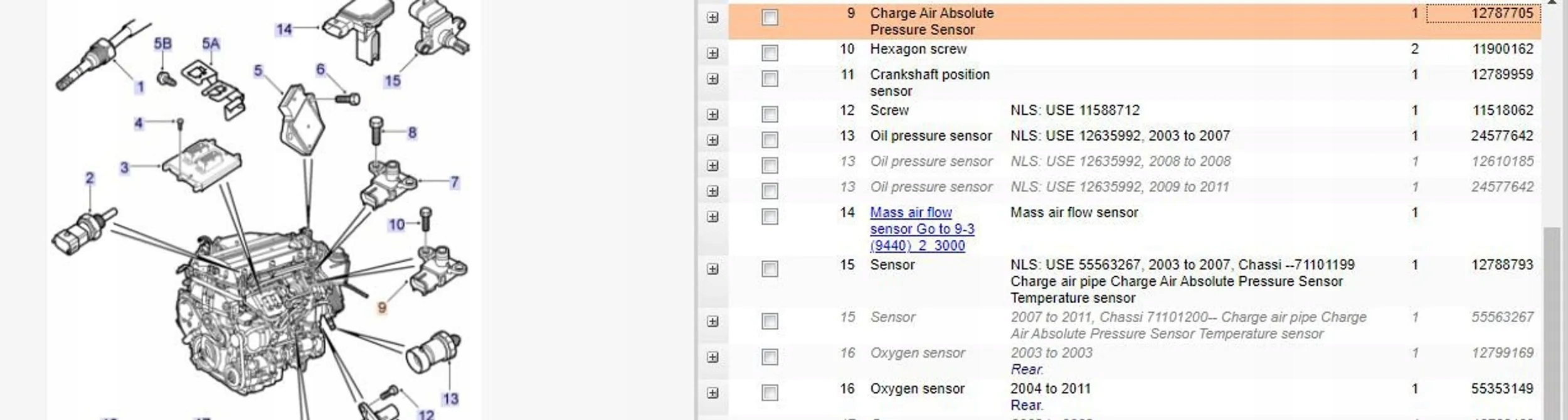 Saab 9-3 Ver2 2004 Датчики тиску в колекторі (MAP)