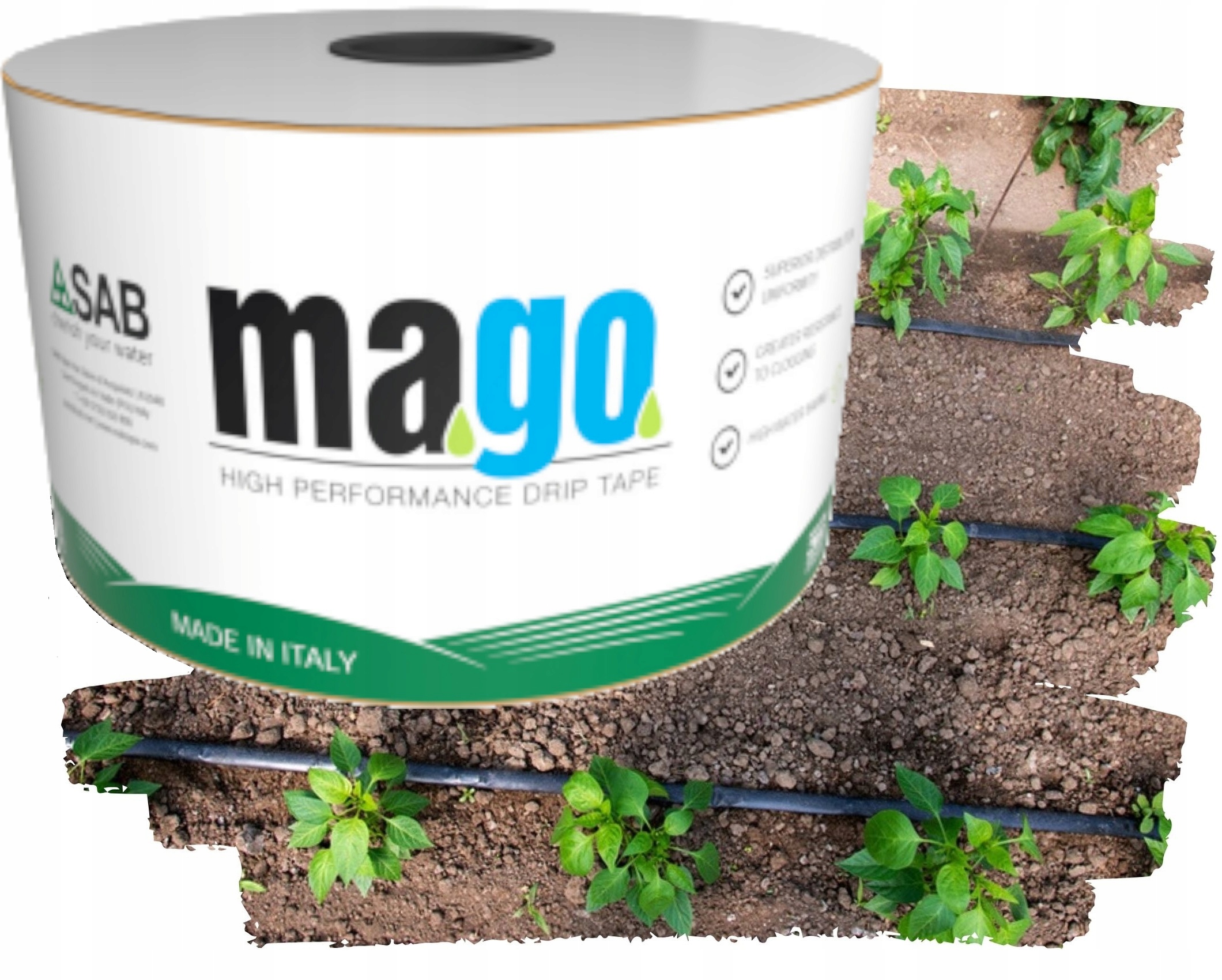 Mago -це крапельна стрічка для зрошення крапельки SAB, розроблена та побудована так, що це продукт з високими параметрами, завдяки лабіринту з великим перехресним розрізом, який забезпечує турбулентний потік води та високу стійкість до засмічення, Mago забезпечує рівномірно розподіл води та добрив, з одним з найкращих. ринок.