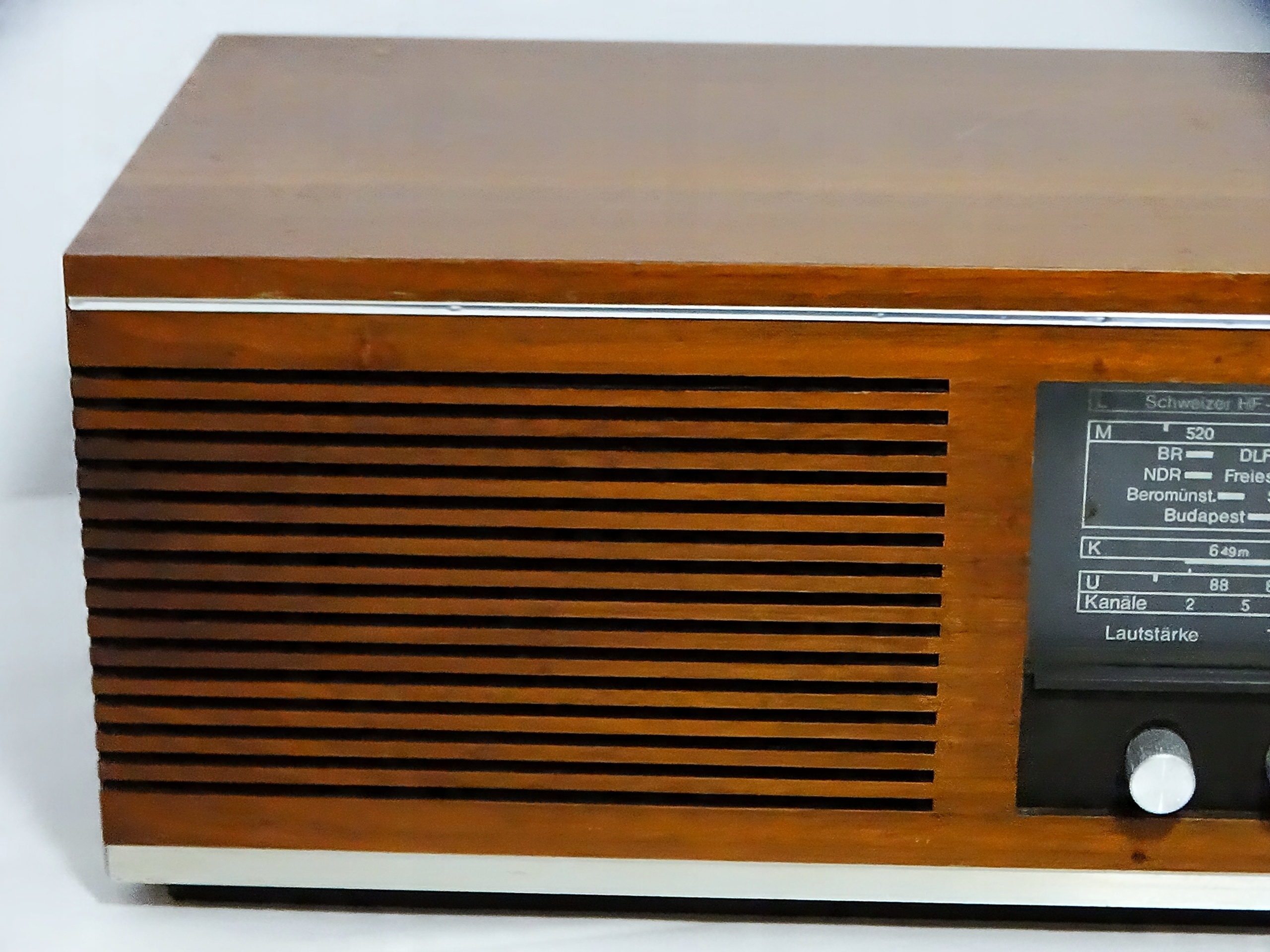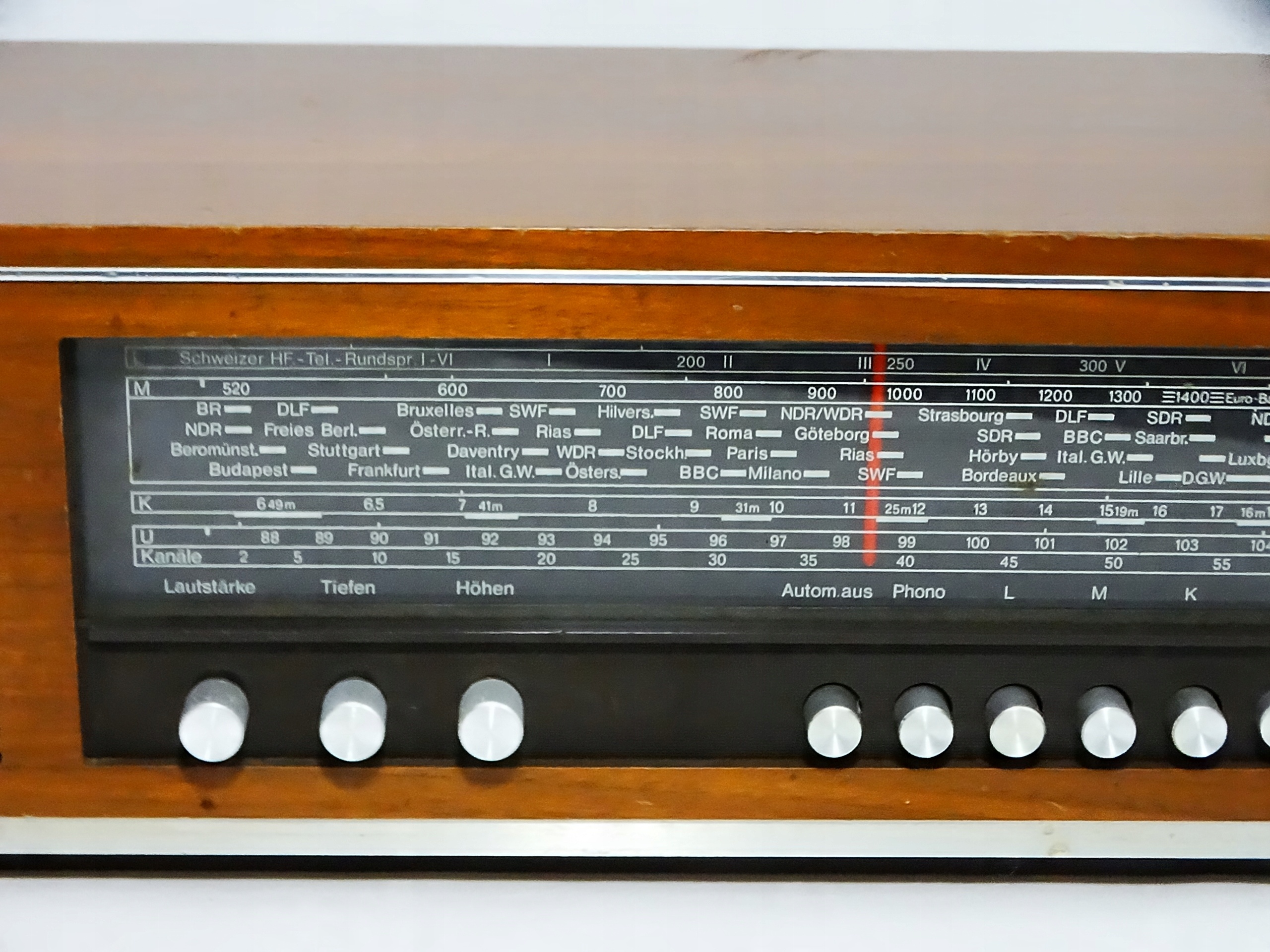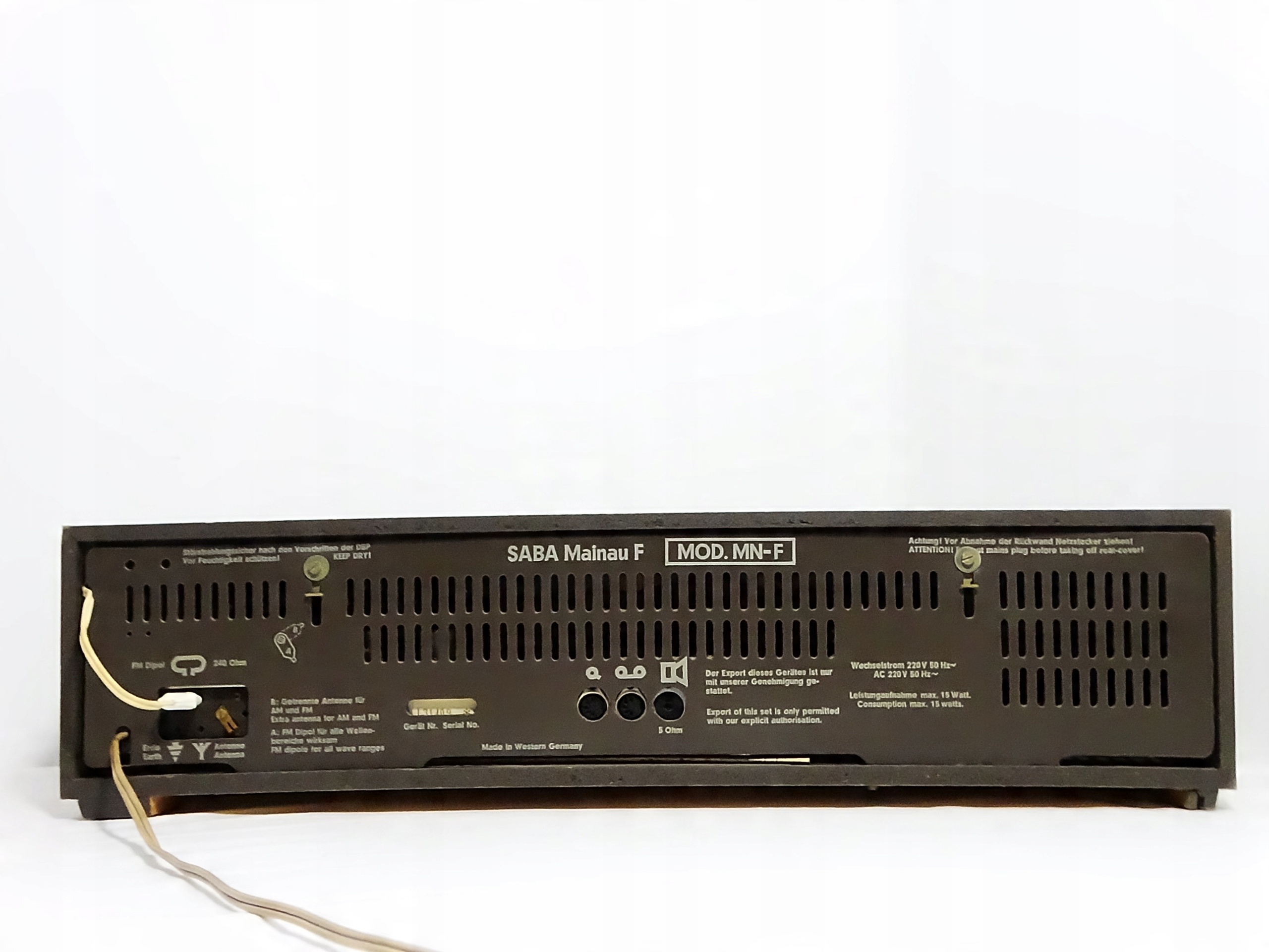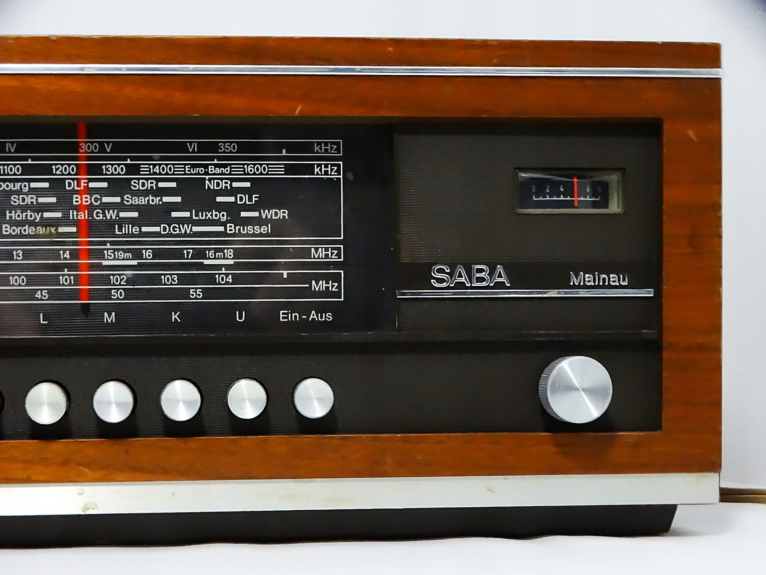 Радіо Саба Мейнау Фах. Радіо технічно ефективні 100% отримує багато радіостанцій на VHF Radio RMF FM, Radio Zet, Trójka, Jedynka, Radio Maryja та багатьох інших. По радіо масштаб лише слід висвітлити, оскільки вона не світить, а ми не розчісуємо, ми не ремонтуємо, ми намагаємось продати в початковому стані, і це так. Ми запрошуємо вас побачити перевірку прослуховування та, звичайно, покупку. Запрошуємо вас. Це був популярний пристрій на той час, відомий високою якістю звуку та вишуканим зовнішнім виглядом. Радіо -корпус був виготовлений з дерева, доступний у різних оздобленнях, таких як темно -блискуча відшліфована деревина, легкий матовий горіх або матовий білий