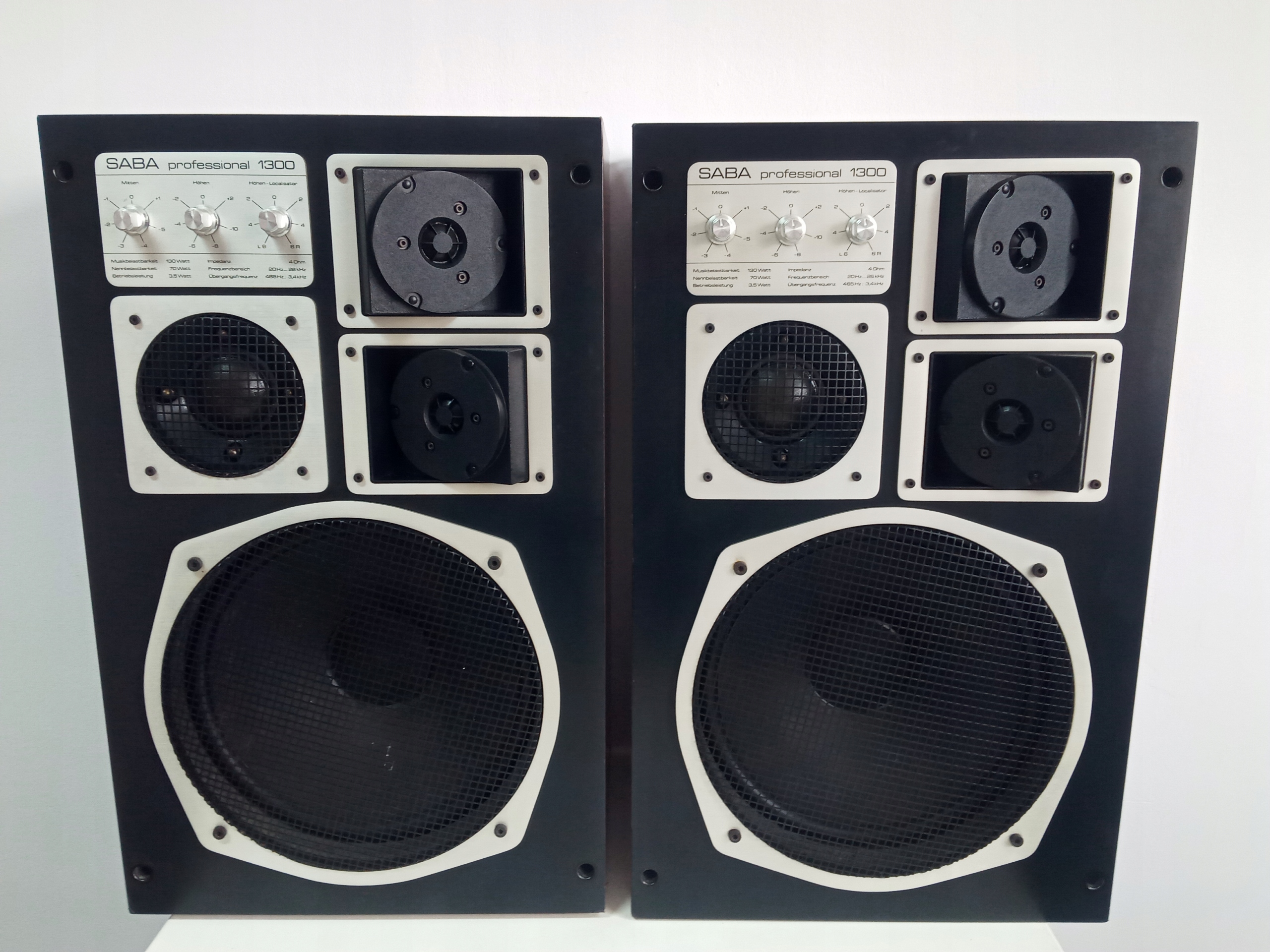 SABA Professional 1300 — це 3-смугова конструкція, висотою 60 см і об’ємом 60 л: 310 мм НЧ-динамік, 130 мм середньочастотний динамік і твітер 2 x 26 мм. Частоти кросовера становлять 485 Гц і 3,4 кГц. Частотний діапазон називається 20-26000 Гц! а номінальний опір становить 4 Ом. НЧ-динамік (Wigo Acoustic PMT 310) має звукову котушку діаметром 52 мм, гумову підвіску і в залежності від версії резонанс 20-25 Гц. Середньочастотним перетворювачем був ITT LPKM 130/50/120T із звуковою котушкою 51 мм і резонансом у вільному полі 220 Гц. Повідомляється, що той самий пристрій використовувався в гучномовцях Tandberg і Bang & Olufsen. Купольний високочастотний динамік Philips AD 0162 T8.