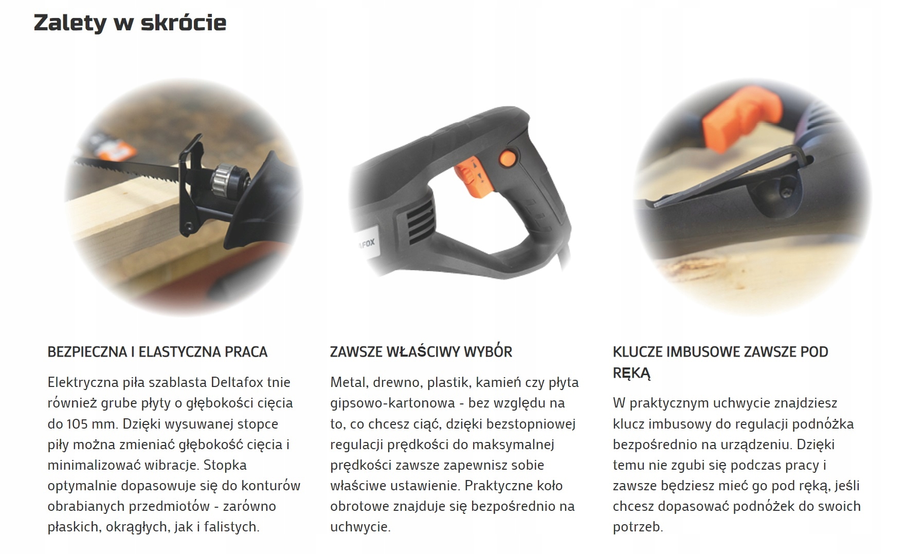 Оплачивая «Сабельна пила LISICA Deltafox з РЕГУЛЮВАННЯМ 800W +3», вы можете быть уверены, что данное изделие из каталога «Сабельные пилы» будет доставлено из Польши и проверено на целостность. В цене товара, указанной на сайте, учтена доставка из Польши. Внимание!!! Товары для Евросоюза, согласно законодательству стран Евросоюза, могут отличаться упаковкой или наполнением.