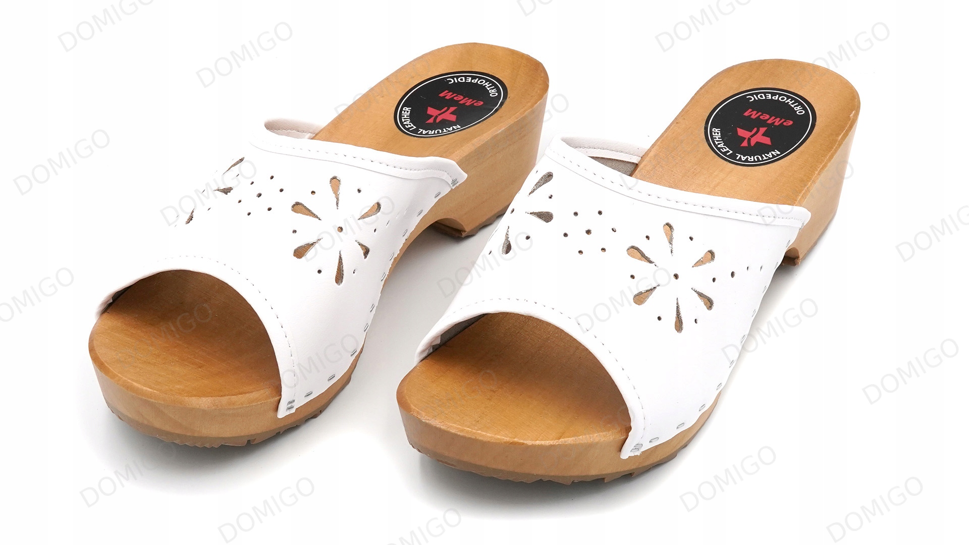 Оригінальні польські ортопедичні сабо ідеально прилягають до стопи та забезпечують комфорт при ходьбі протягом усього дня. Гладка поверхня з вільхи і верхній шар натуральної шкіри забезпечують хороше положення стопи і запобігають надмірному потовиділенню. Підошва з поліуретану забезпечує належну амортизацію та робить сабо протиковзким і стійким до стирання.