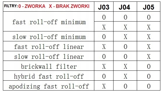 - вибір цифрових фільтрів за допомогою перемичок (при відключенні живлення),