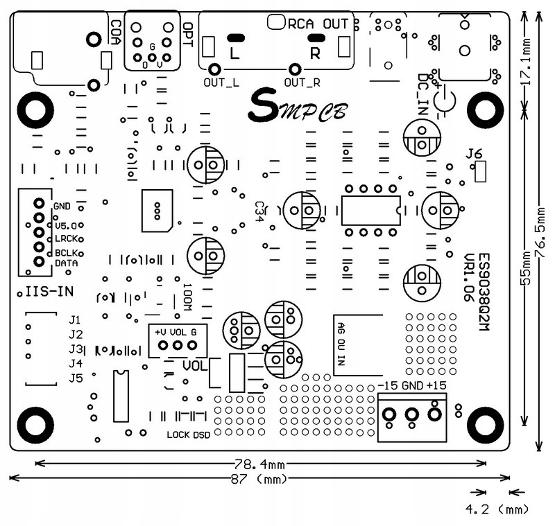 - є можливість регулювати гучність після застосування Моно потенціометр 10K (зніміть перемичку з 3-контактного роз’єму та підключіть потенціометр) - регулювання гучності здійснюється в домені цифровий,