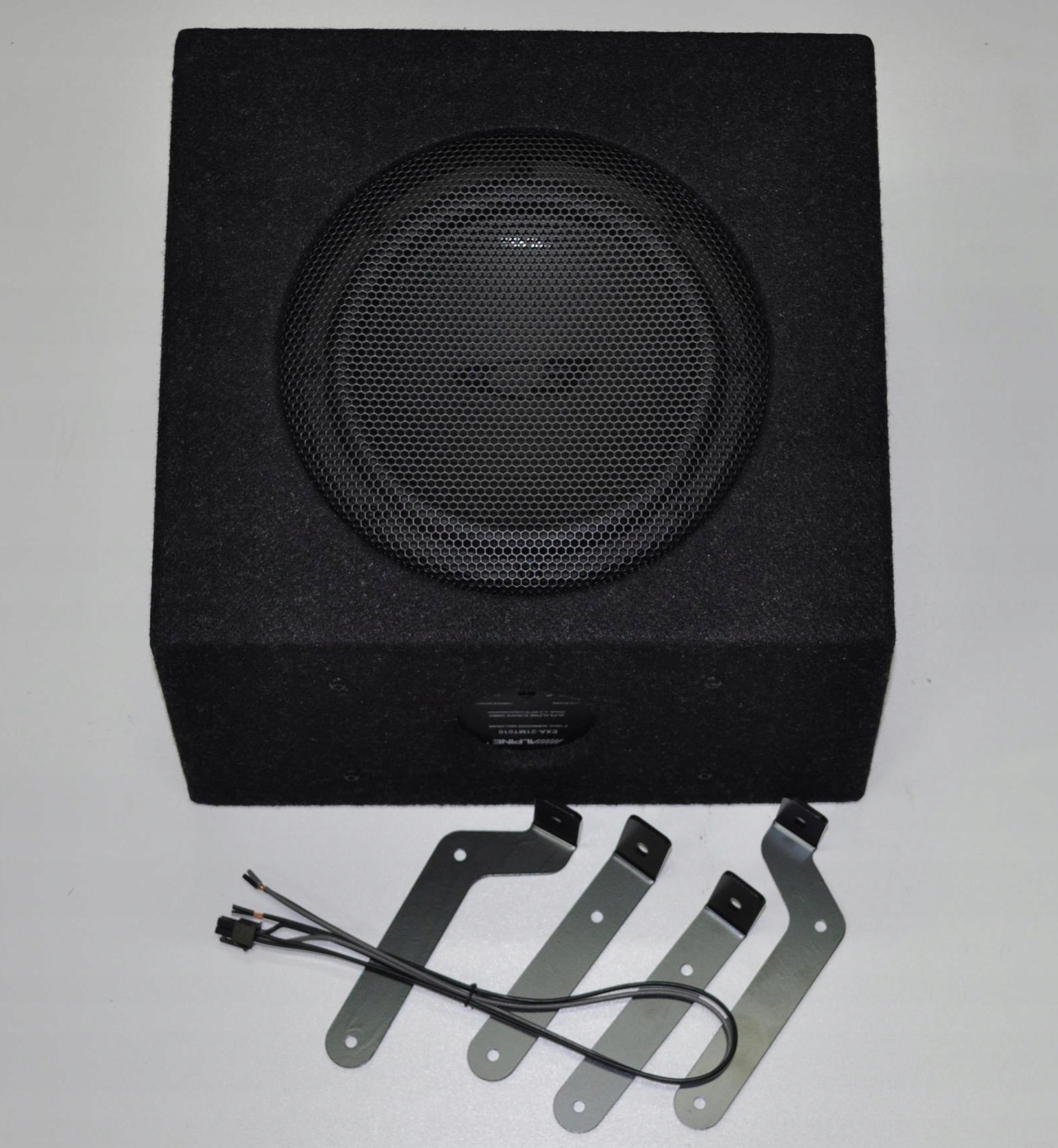 ALPINE ЦЕ САБВУФЕР, ЩО ВСТАНОВЛЮЄТЬСЯ ПІД ПАСАЖИРСЬКИМ СИДІННЯМ ЗА ДОПОМОГОЮ ЗАВОДСЬКОГО КРЕПЛЕННЯ СИДІННЯ, І, ЗВИЧАЙНО, КОМПЛЕКТ ВКЛЮЧАЄ ДОДАТКОВІ КРОНШТЕЙНИ ТА МОНТАЖНІ ГВИНТИ.