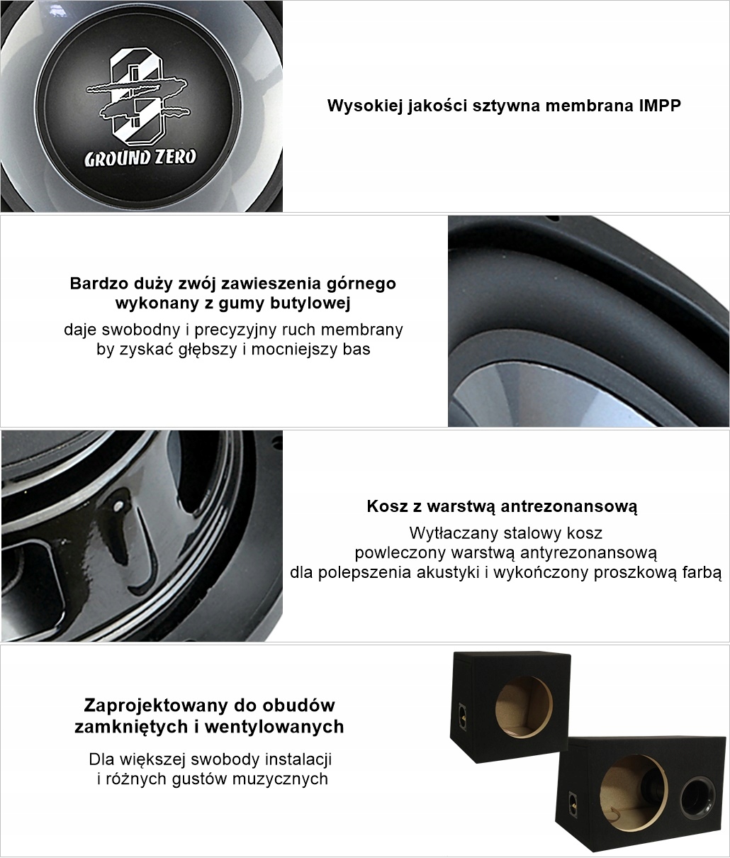 Нуччастий динамік Ground Zero GZFW 300 із серії Ferrum був створений для досягнення потужних і глибоких басів на будь-якому рівні гучності за доступною ціною.
