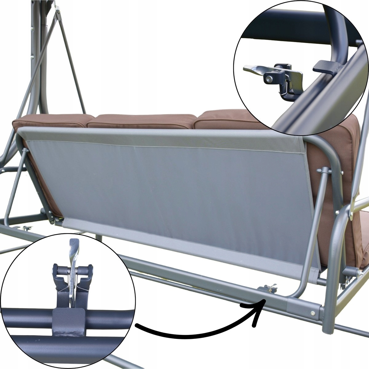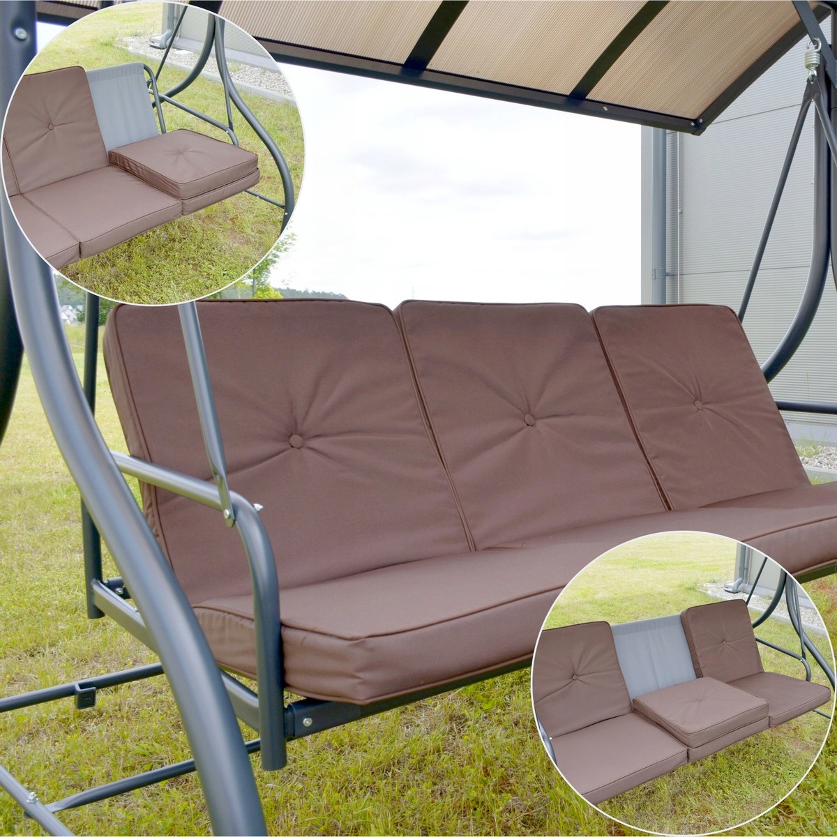 Можливість розподіляти спинку на положення дивана - це унікальна функціональність, яка дозволяє насолоджуватися лежачими розслабленнями. Ідеально підходить для сонцезахисних ванн, дрімоти або мирного відпочинку після важкого дня. Завдяки цьому рішення, гойдалка стає справжньою зоною комфорту у вашому саду.