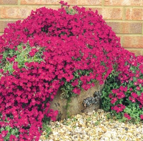 Його найбільша прикраса з’являється на рубежі квітня та травня невеликих, але надзвичайно численних, зазвичай рожевих або фіолетових квітів, які майже повністю покривають листя, створюючи красиву, барвисту, барвисту, кольорову пляму. До кінця сезону рослини щільні, частково вічнозелені, ромбоїдні, злегка волохаті листя, утворюючи вражаючі, м'які подушки зі знижкою.