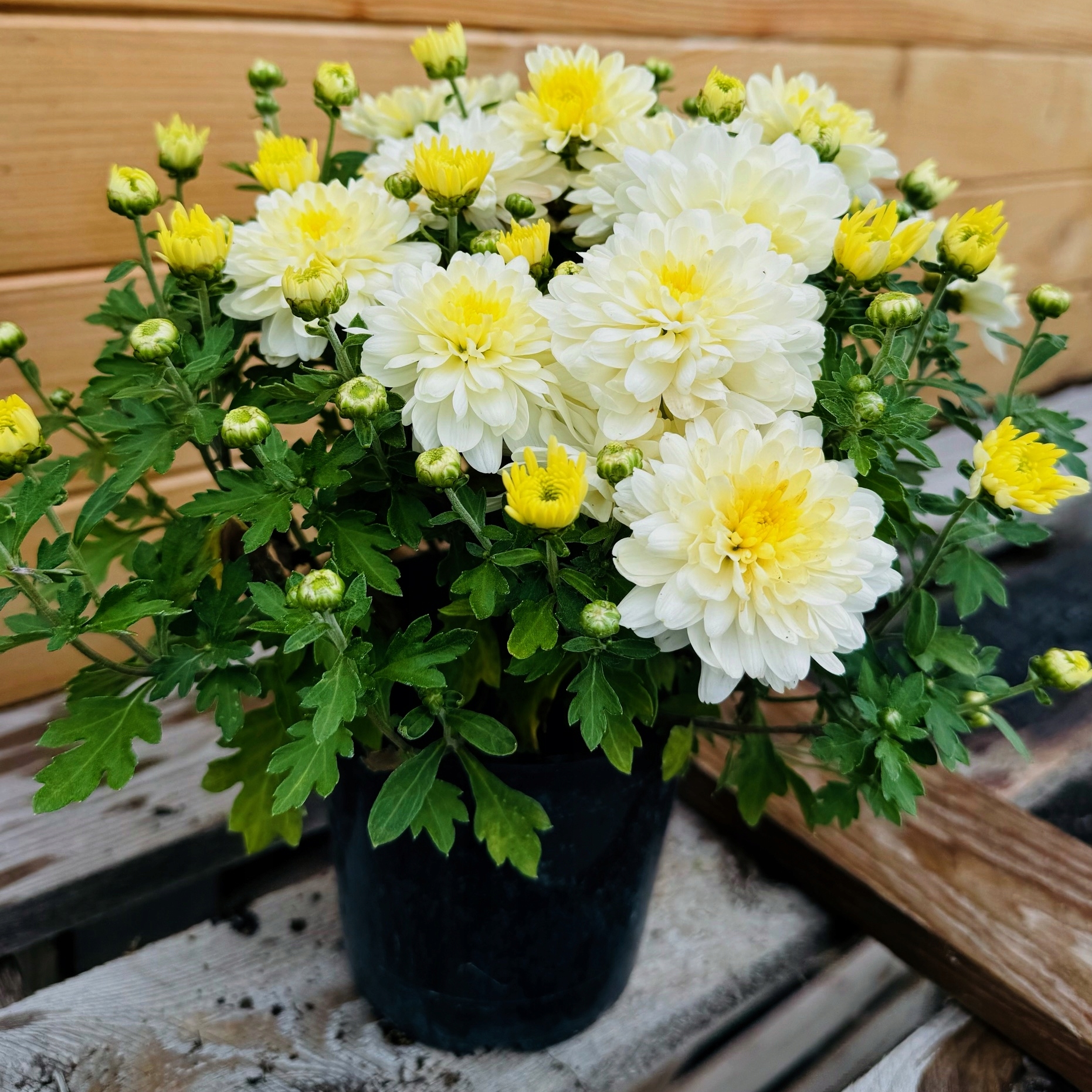 горщик хризантема - вершкова елегантність з теплим акцентом