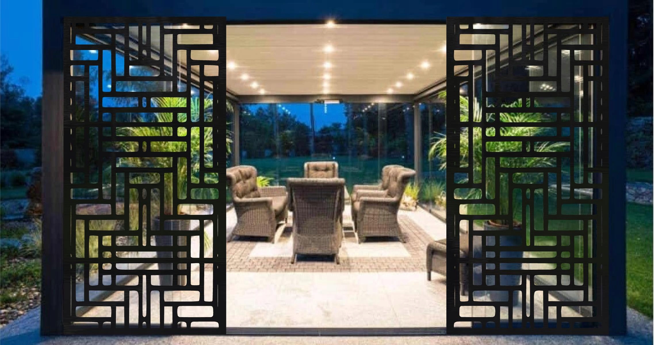 Панелі вирізаються за допомогою лазерної техніки, що дозволяє отримати надзвичайно рівні й дуже точні краї. Панелі легко монтуються і можуть бути використані в якості прольоту огорожі, хвіртки, воріт, балюстради, оздоблення стелі, внутрішнього оздоблення стін і елементів альтанок, садових дахів, пергол і конструкцій терас. У кожному елементі ми можемо вирізати готові отвори для заклепок або кріпильних кронштейнів відповідно до потреб замовника.