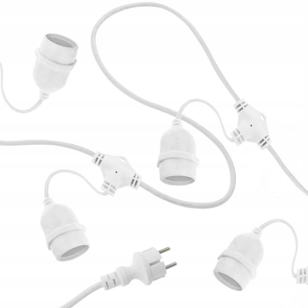 5 гнізд для лампочок E27 були розташовані в довжині 5м. Відстань між цибулинами становить 62,5 см. Над кожним гніздом є отвір, який дозволяє повісити гірлянду. можливість з'єднати гірлянду! допустима довжина в рядку: макс. 200 м або макс. 700w
