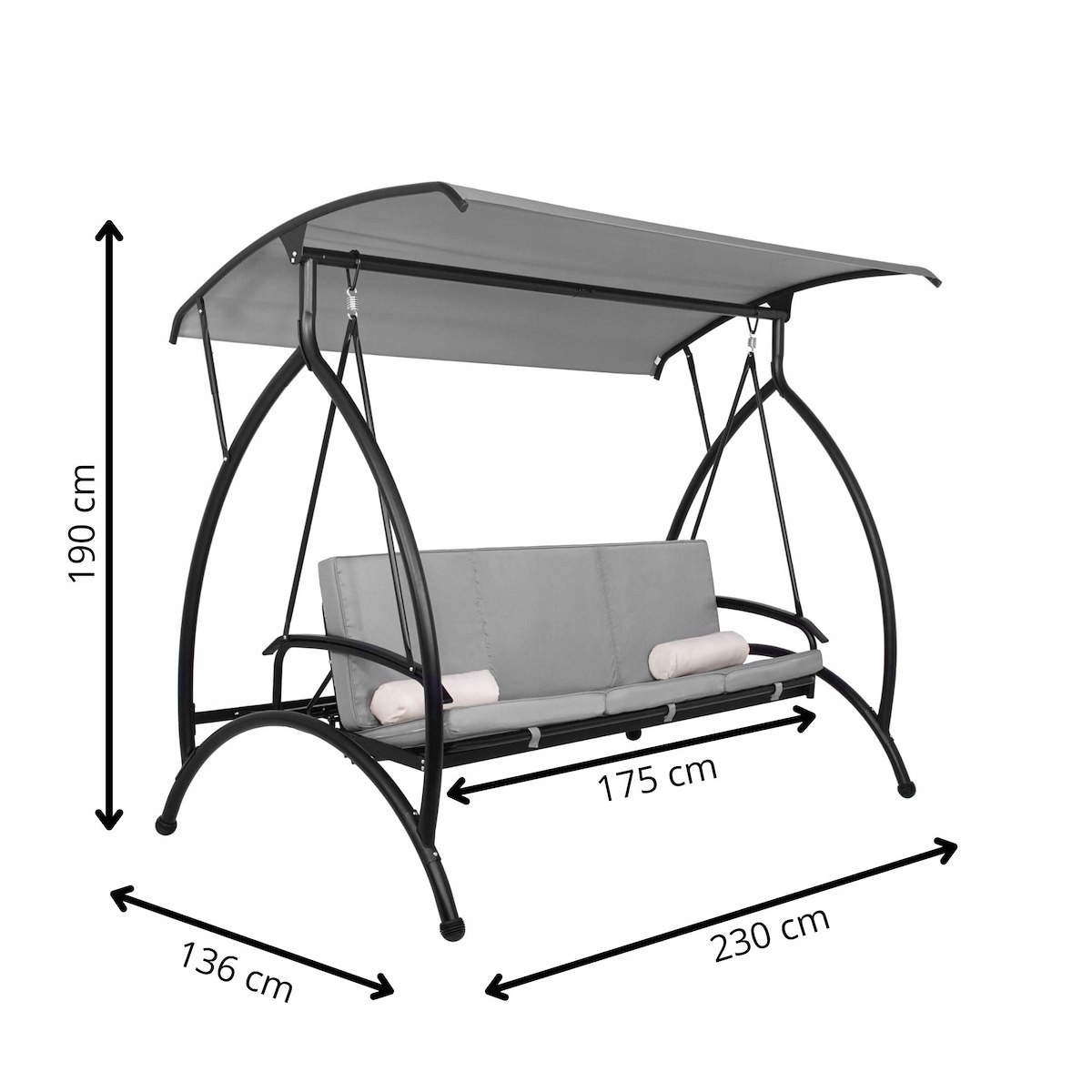 - Загальна висота (з горизонтальним налаштуванням даху): 190 см