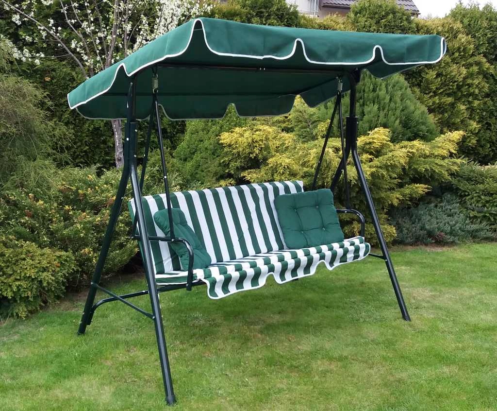 Садові гойдалки, на 3 особи, з регульованим дахом і товстими, зручними біло-зеленими подушками для сидіння