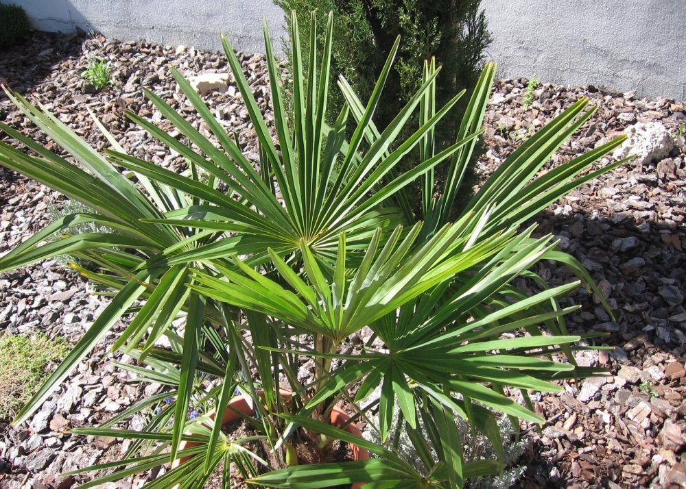 Корисна інформація: багажник китайської долоні вітряки з його коричневими волокнами сильно нагадує конопель і тому називається конопляною пальмою німецькою мовою. Листя цієї прекрасної парасолькової пальми дуже сильні і глибоко розрізані до основи листя. Щороку його ядро протікає до десяти нових, споруджених листя, а старша корона внизу падає з часом. Оскільки його природне середовище є азіатським гірським регіоном на висоті близько 2500 метрів над рівнем моря, що насправді рідко для пальм, він може навіть витримати сніг і мороз до -18 ° C, коли рослина досягає зрілості.