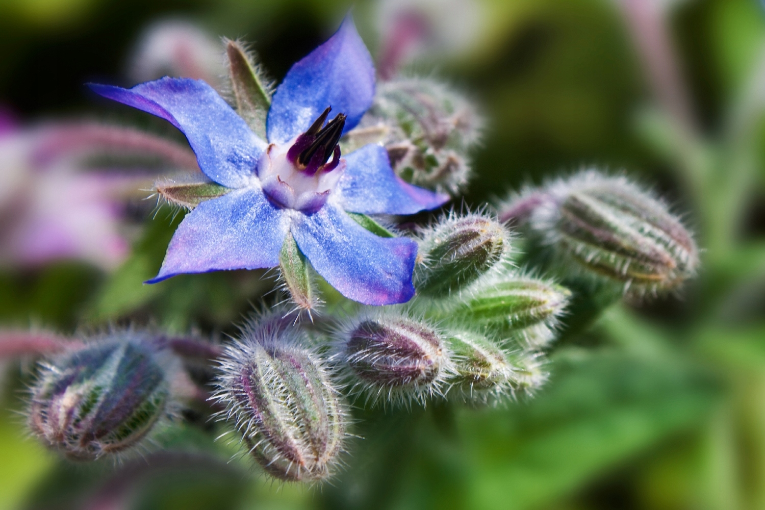 Корисна інформація: Енергетичний салат з огірків із синьою зіркою, у формі квітів, є важливим рослиною у традиційних домашніх садах. Чагарник віддає перевагу сонячним місцям і може вражаюче рости на висоту 1 метр. Її декоративні, як правило, блискучі блакитні квіткові зірки також приваблюють бджіл, саме тому його зазвичай називають медовою рослиною. Якщо ви віддаєте перевагу вирощувати огірок у горщику, вам слід вибрати більш високий горщик, щоб забезпечити достатньо місця для розвитку глибоко досягаючого кореня ворсу та його великих коренів. Найкраще збирати листя, коли вони ще молоді та ніжні, і квіти, коли вони повністю відкриті. Молоді листя трохи пахнуть огірком і просто подрібнюють і додаються до салатів. Вони добре поєднуються з рибними соусами та стравами. Найвідомішим є використання огіркового разом з шістьма іншими травами у традиційному німецькому зеленому соусі. Огіркові квіти - це барвиста прикраса. Просто візьміть чорну ляльку посеред квітки і обережно витягніть квітку з чашки. Заморожений -Frozen У лотку для кубиків льоду, квіти -це приємна плаваюча прикраса в літньому напої. Ви також можете їх кристалізувати та створити приємне доповнення до тіста. Розбийте квіти в сухий день. Збийте білок для піни і спочатку занурюйте квіти в білок, а потім у тонкому цукрі. Обережно покладіть їх на тарілку з випічкою та висушіть їх на кілька годин у м'якій теплої духовці з злегка відкритими дверима або зберігайте їх на день -два в сухому і теплому місці. Ви можете зберігати свої декоративні квіти у закритому коробці до використання.