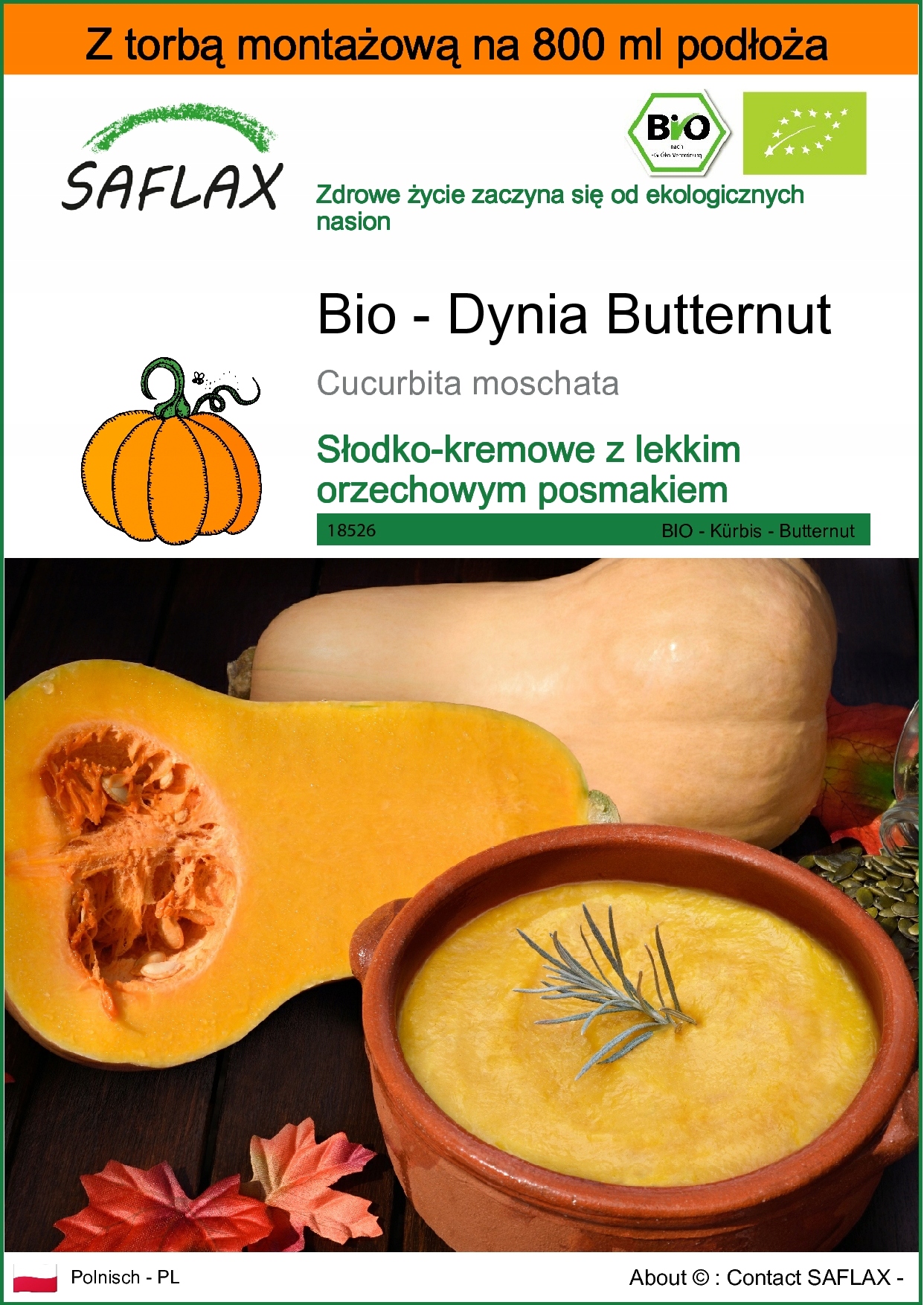 Корисна інформація: butternut виробляє поздовжні, грушеві фрукти зі світло -коричневою зовнішньою стінкою та щільною помаранчевою внутрішньою м’якоті. Плідна м’якоть м’яка і зазвичай не волокниста. Плоди досягають до 20 см завдовжки і важать близько 2 кілограмів. Кожна рослина виробляє в середньому від 3 до 4 фруктів. Гарбуз дуже універсальні на кухні. Вони чудово підходять для приготування супу, тушкованого або каррі. Кваш також може бути смачною ароматною альтернативою шматочкам картоплі. У мисці змішайте трохи трав і олії і розкладіть суміш маринаду на шматочки гарбуза. Готуйте шматки в гарячій духовці приблизно від 20 до 30 хвилин, поки вони не стануть м’якими всередині і хрустким зовні. Тоді ви можете подавати їх із салатом та йогуртом або гуакамоле або як доповнення до чилі.