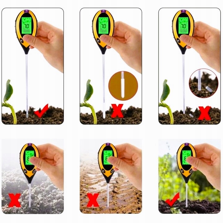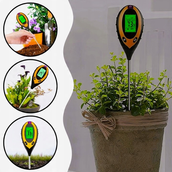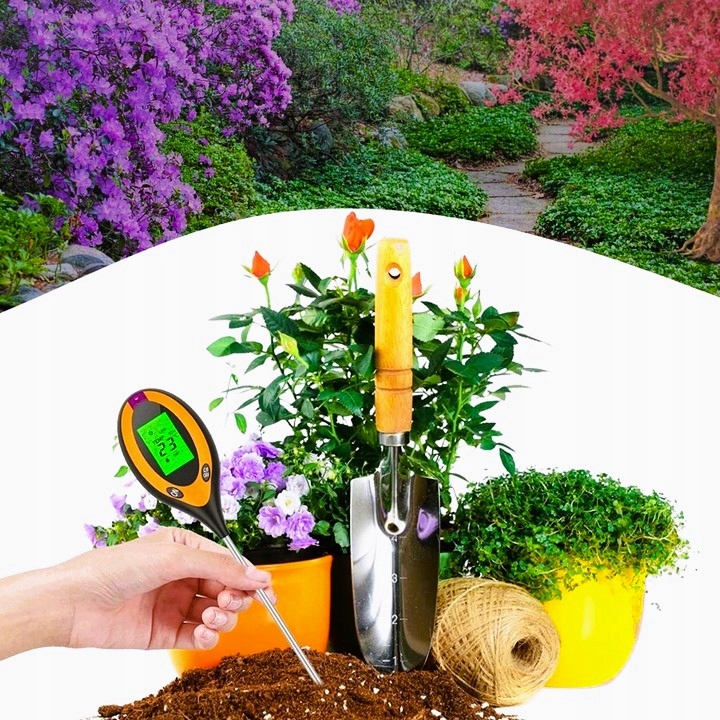 - Вимірювач кислотності ґрунту 4-в-1 — ідеальний інструмент, який дозволить вам точно вимірювати рН ґрунту, вологість ґрунту, температуру та сонячне світло. . Завдяки точним результатам вимірювань ви зможете ефективно доглядати за своїми рослинами та створювати для них ідеальне середовище для росту