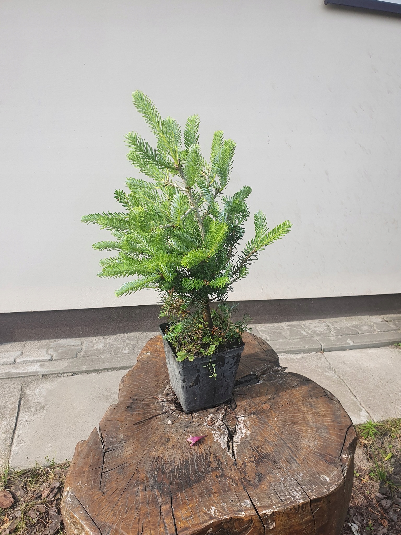 На цьому аукціоні ви купуєте саджанець корейської ялиці, висаджений у горщик, висотою приблизно 40 см.