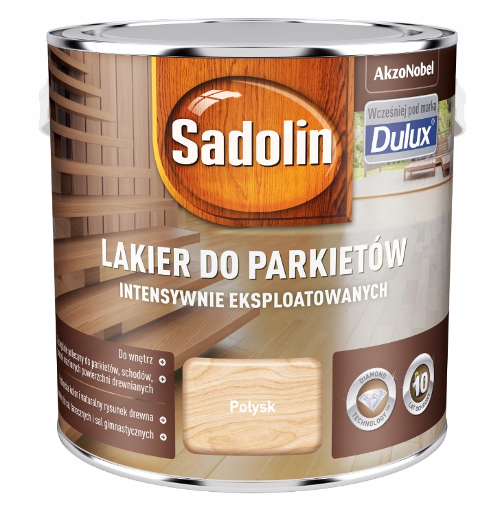 Садолін лак для паркетів, що інтенсивно використовуються, призначений для внутрішнього захисту дерев'яних поверхонь, таких як сходи, паркетна підлога, танцювальні та спортивні зали. Завдяки запатентованій технології Diamond Technology™, Sadolin Lacquer for Intensive Used Parkets характеризується дуже високою стійкістю до подряпин і механічних пошкоджень до 10 років. Завдяки складу на водній основі, лак має дуже низький рівень запаху після фарбування, що дозволяє одночасно використовувати суміжні приміщення. Швидкосихаюча формула дозволяє наносити необхідні шари за один день і, з належною обережністю, невеликий рух можна дозволити через 24 години.