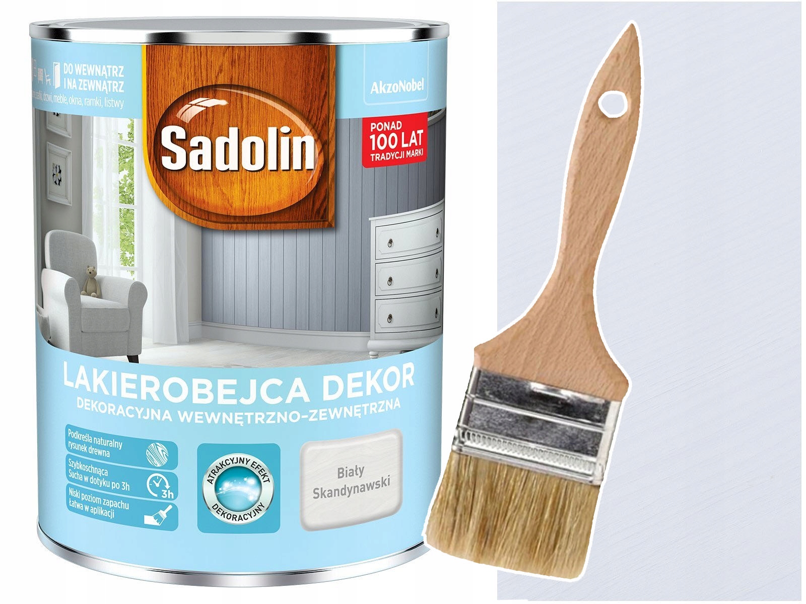 Водорозчинна лакова морилка для захисту та декорування дерев'яних поверхонь усередині та зовні приміщень. Він створює покриття з сатиновим покриттям, підкреслюючи природну красу пофарбованої деревини та забезпечуючи дуже міцний декоративний ефект. Сучасні та модні кольори лаку надають дерев’яним поверхням інтер’єру неповторного стилю. Формула, яка швидко висихає та не має запаху, дозволяє безпечно та легко наносити його в приміщенні. Пофарбовані поверхні сухі на дотик лише через 3 години.