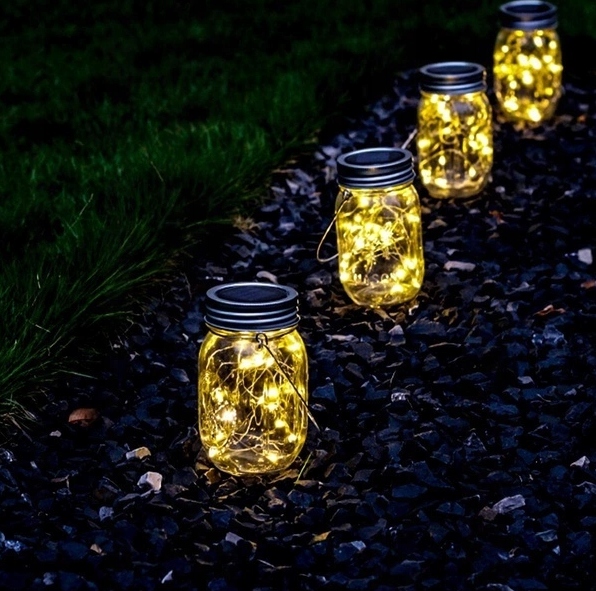Чудовий світильник на сонячних батареях, який ідеально підходить для прикраси саду, тераси або альтанки. Банка має декоративне тиснення, що є додатковою візуальною перевагою.
