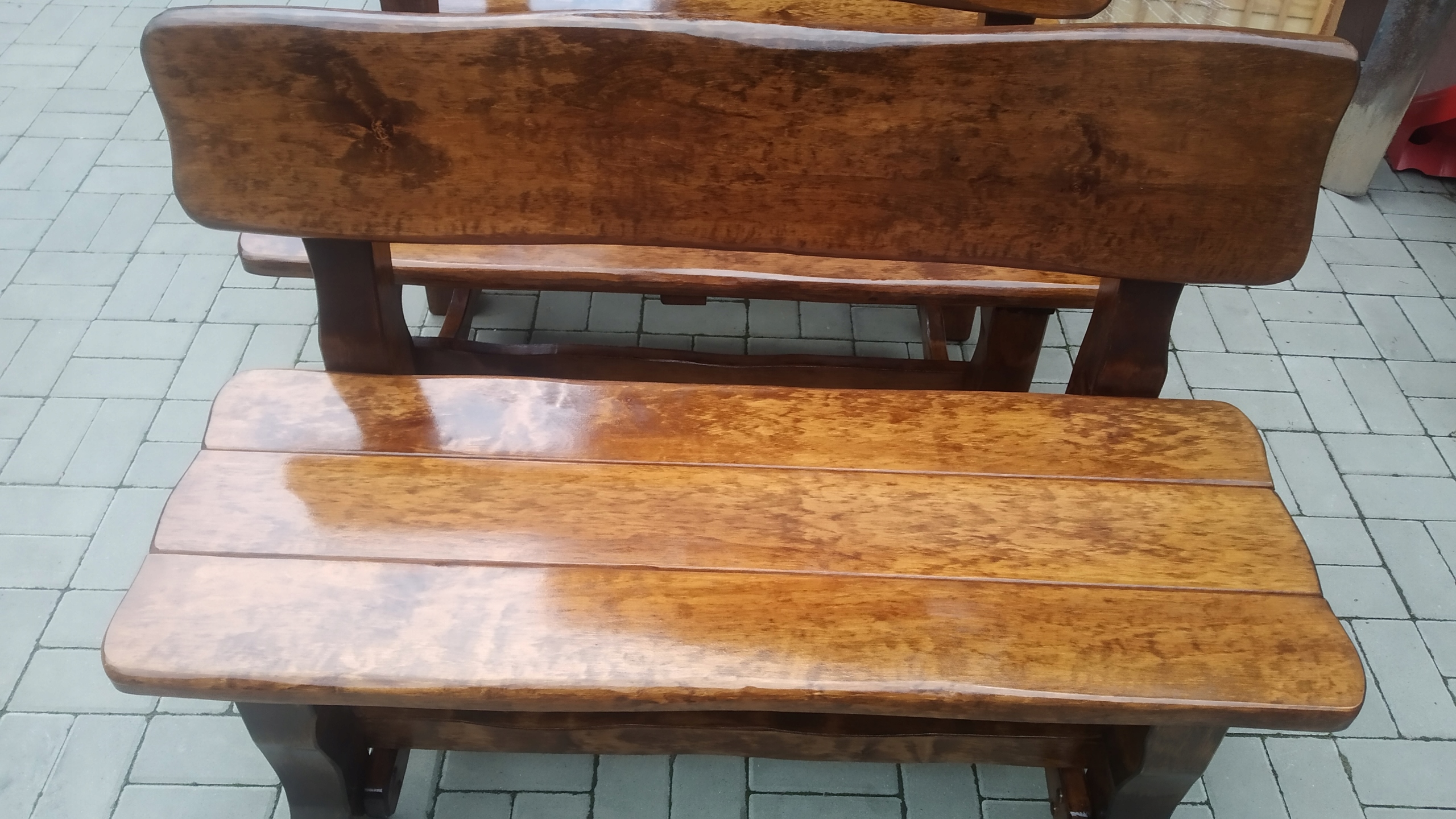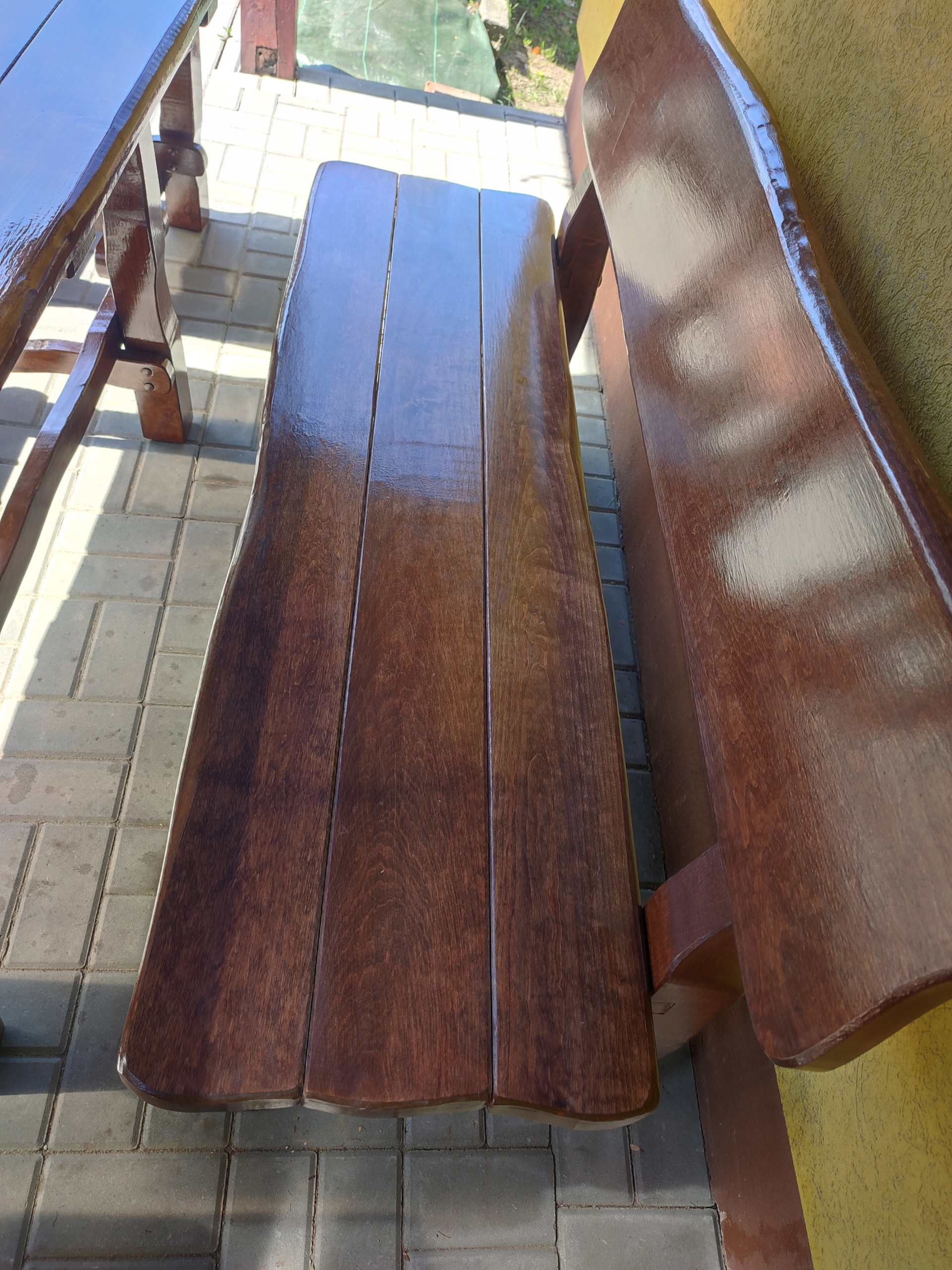 Спинка лави і зовнішні дошки для сидіння мають неправильну форму, що надає нашим меблям неповторний шарм.