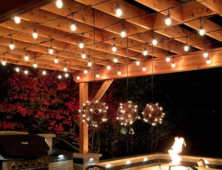 - У саду: прикрасьте свій садовий простір, повісивши гірлянду на дерева, паркани чи перголи. Завдяки водонепроникній конструкції ви можете насолоджуватися освітленням навіть під дощем.