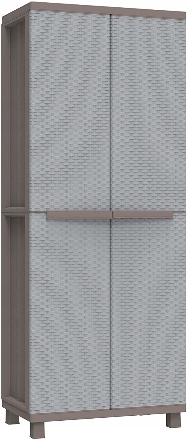 - Дуже практична шафа з високою стійкістю до механічних пошкоджень і стійкістю до погодних умов, що полегшує підтримання порядку на садовому балконі чи терасі.