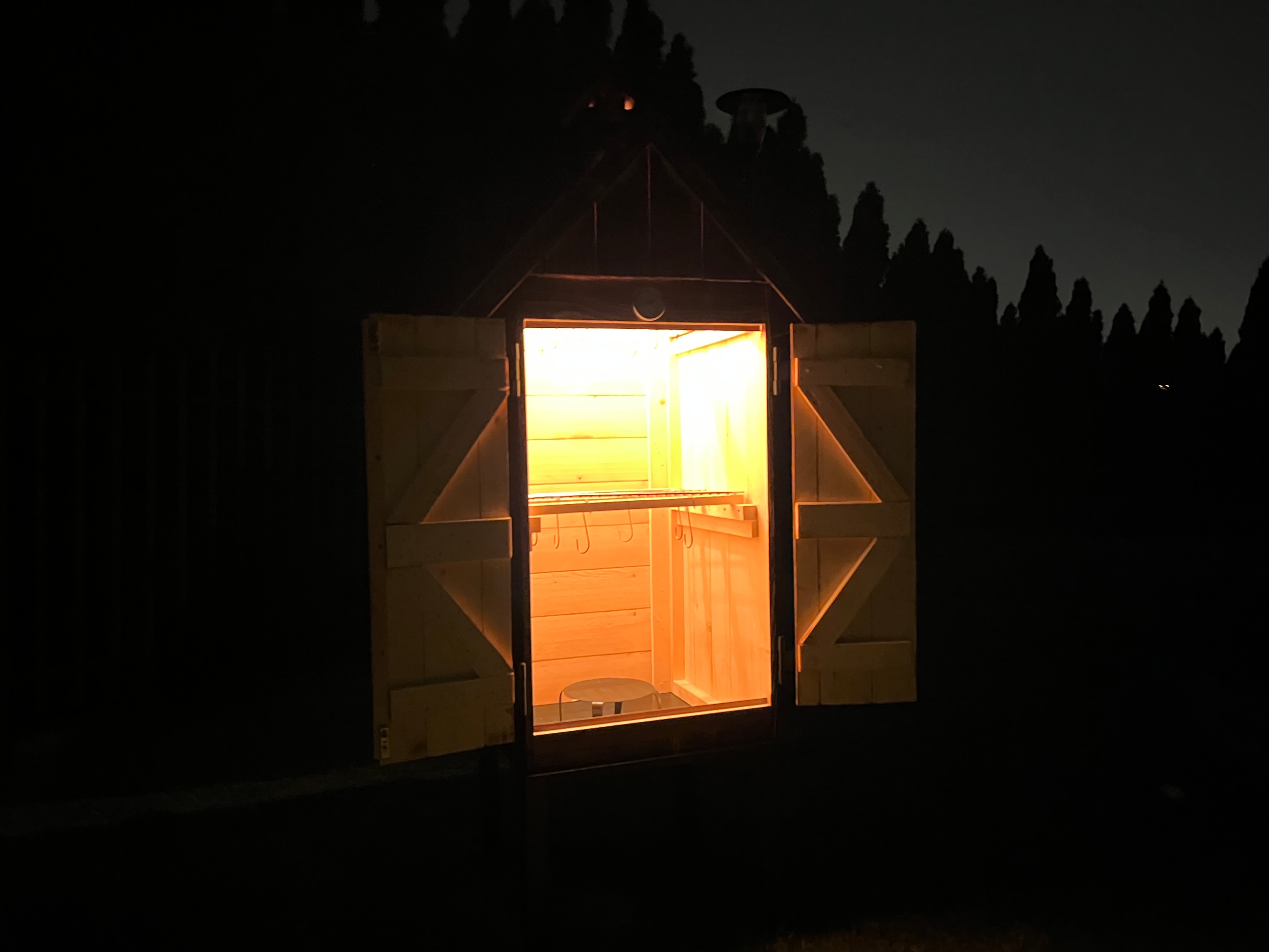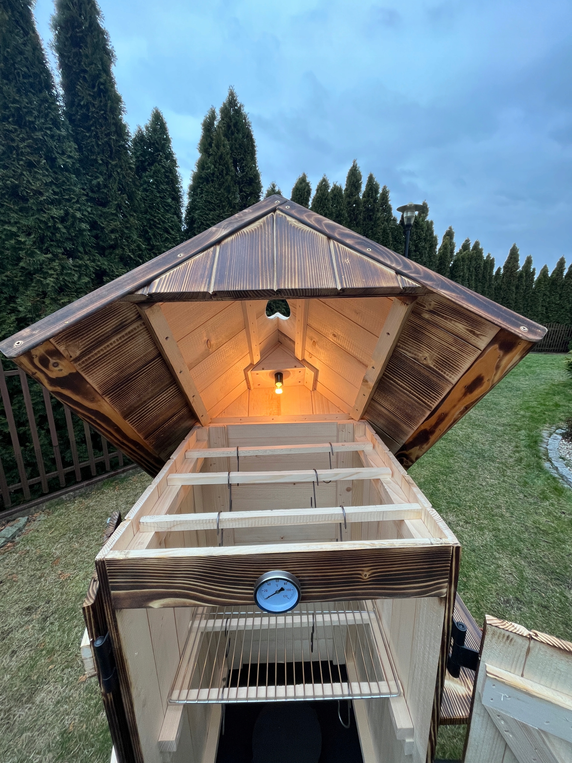 Садова коптильня "Повний випас" + 230В ЛАМПА. Маленька міцна лампа, яка буде освітлювати та значно полегшувати видимість під час процесу копчення. Це дає гарний візуальний ефект пізно ввечері.