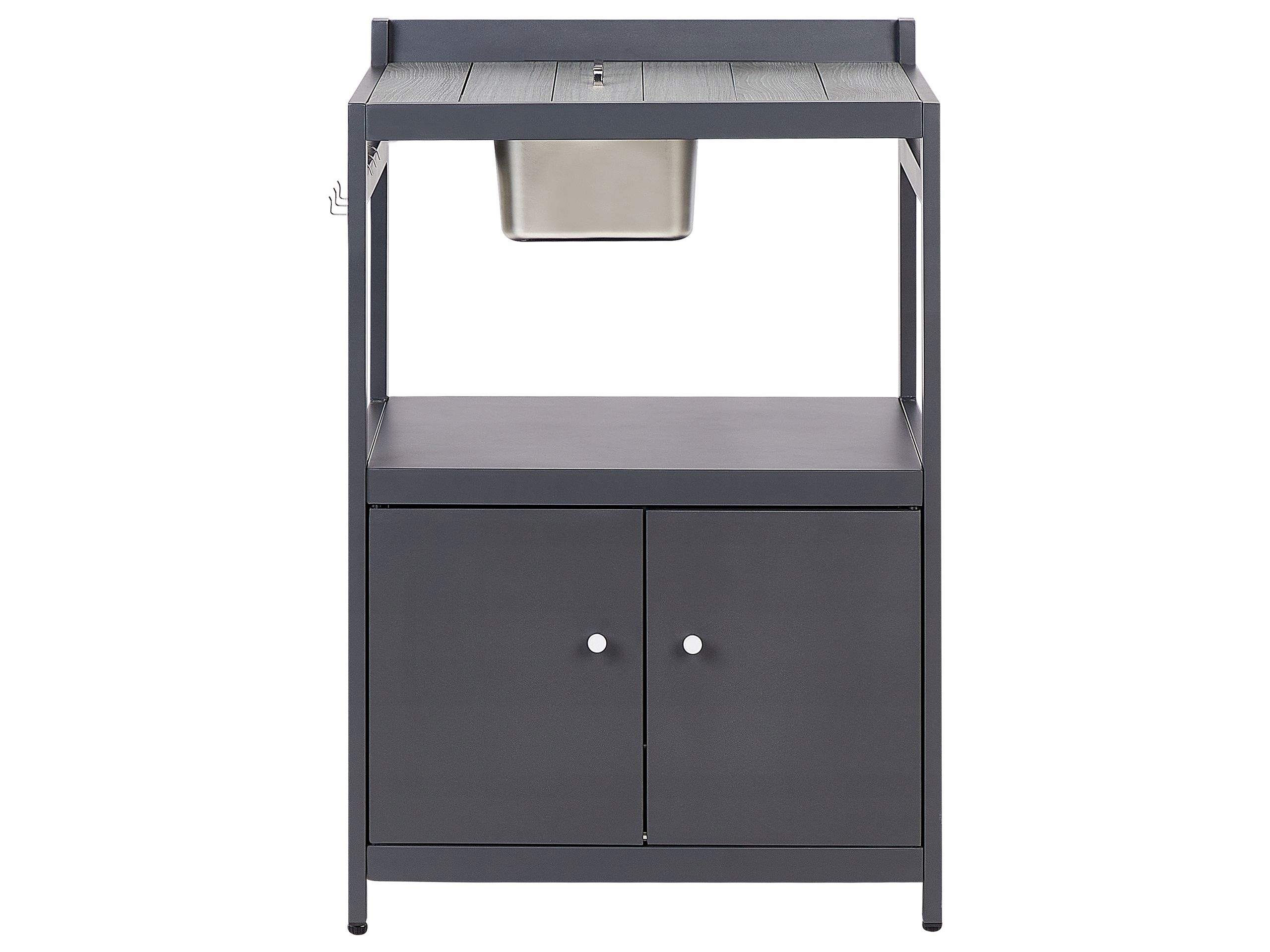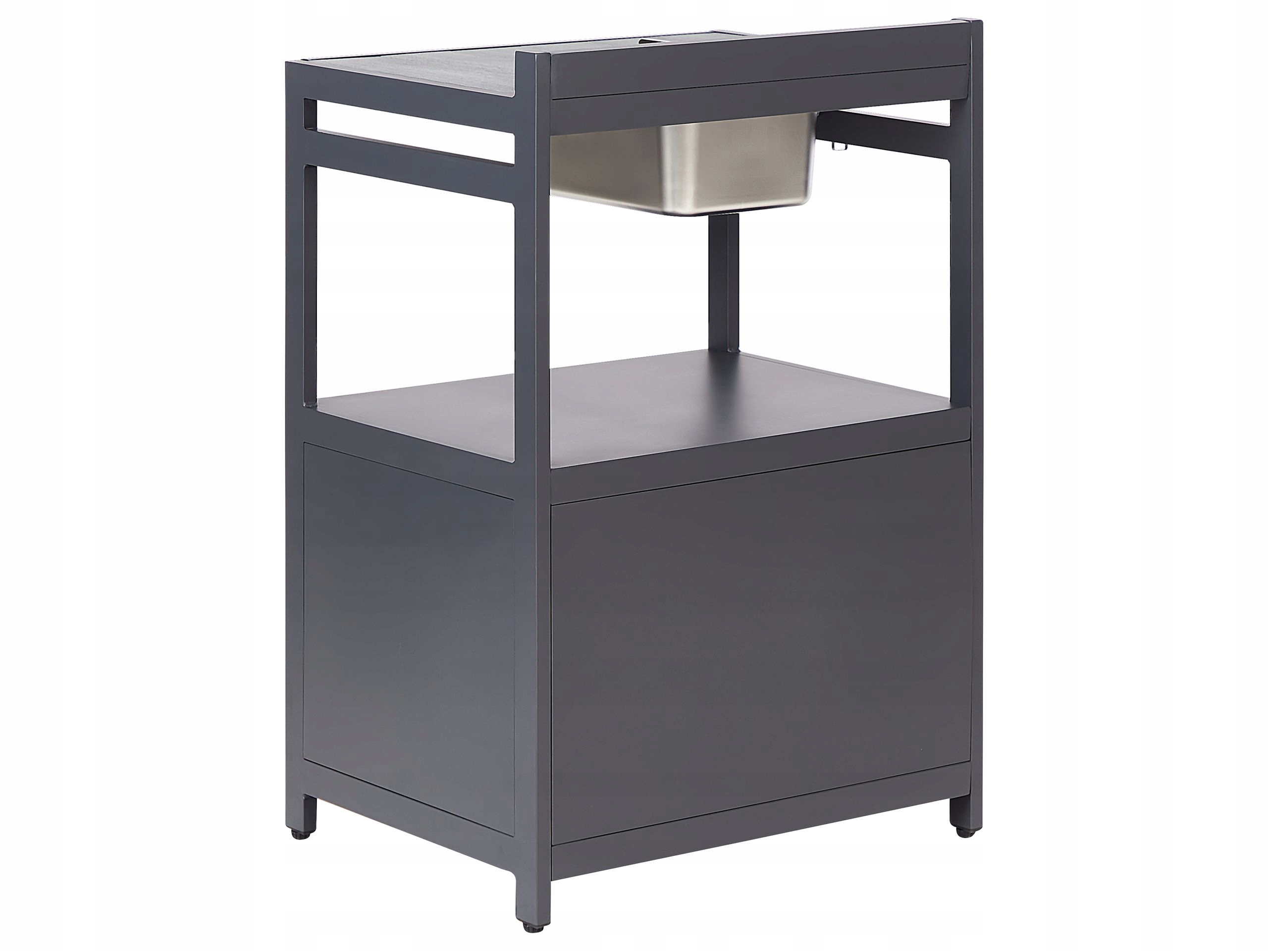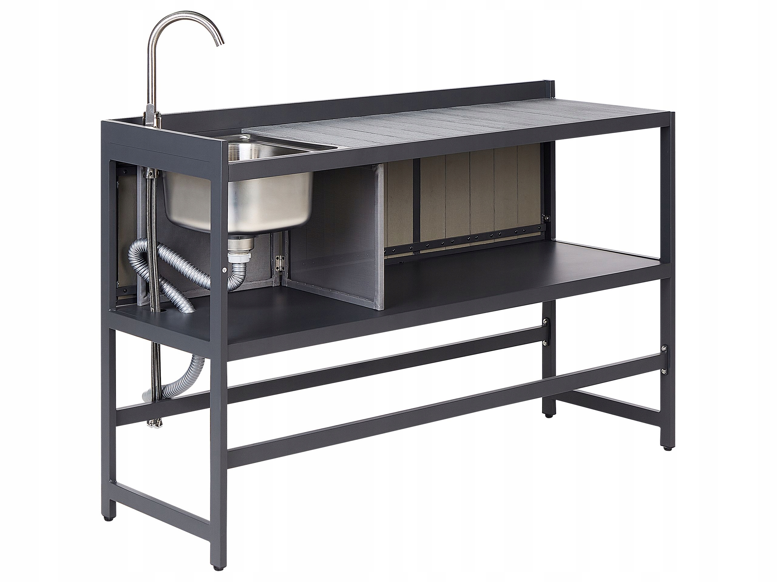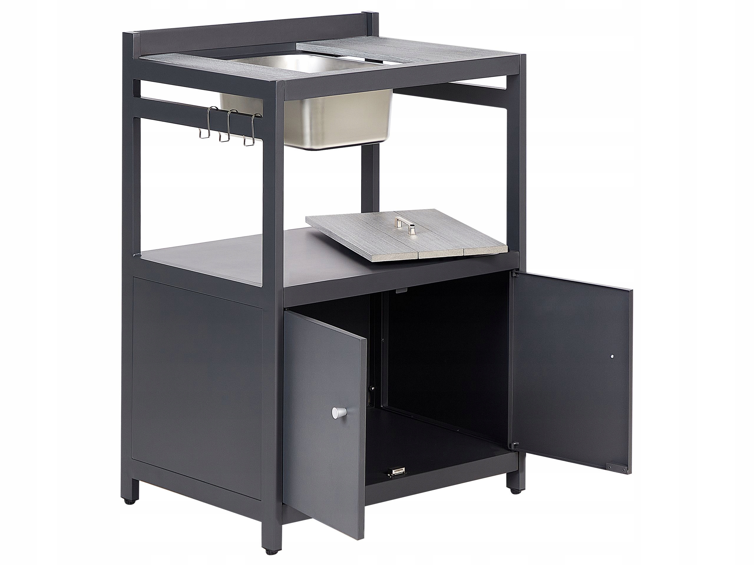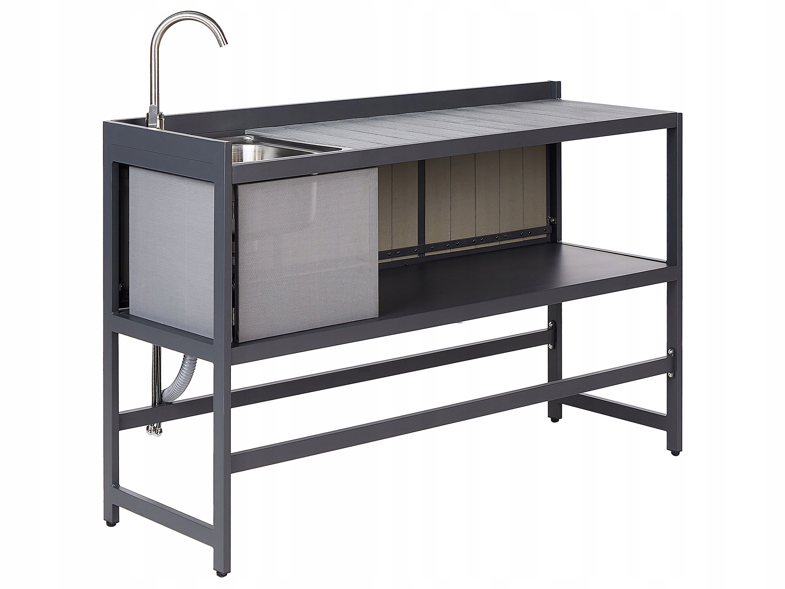 Змініть свій зовнішній простір завдяки цьому стильному та універсальному набору, ідеально відповідних сучасних композицій. Виготовлений з постійного пофарбованого порошком алюмінію, з вершинами та робочими поверхнями, виготовленими з синтетичної деревини, цей набір стійкий до погодних умов та ультрафіолетового випромінювання та вимагає мінімального догляду, що гарантує використання тривалого терміну. Колекція включає три ключові елементи: робоча станція з раковиною та полицею для зручної приготування страв, шафи з прихованою контейнером для льоду, ідеально підходить для охолодження напоїв та практичної коляски порції, яка, завдяки колесам, можна легко переміщувати. Кожен елемент можна використовувати поодинці або складати з іншими, надаючи повну гнучкість у адаптації простору до індивідуальних потреб. Цей сучасний набір поєднує функціональність з елегантною конструкцією, що становить ідеальне доповнення до ганку або внутрішнього дворика.