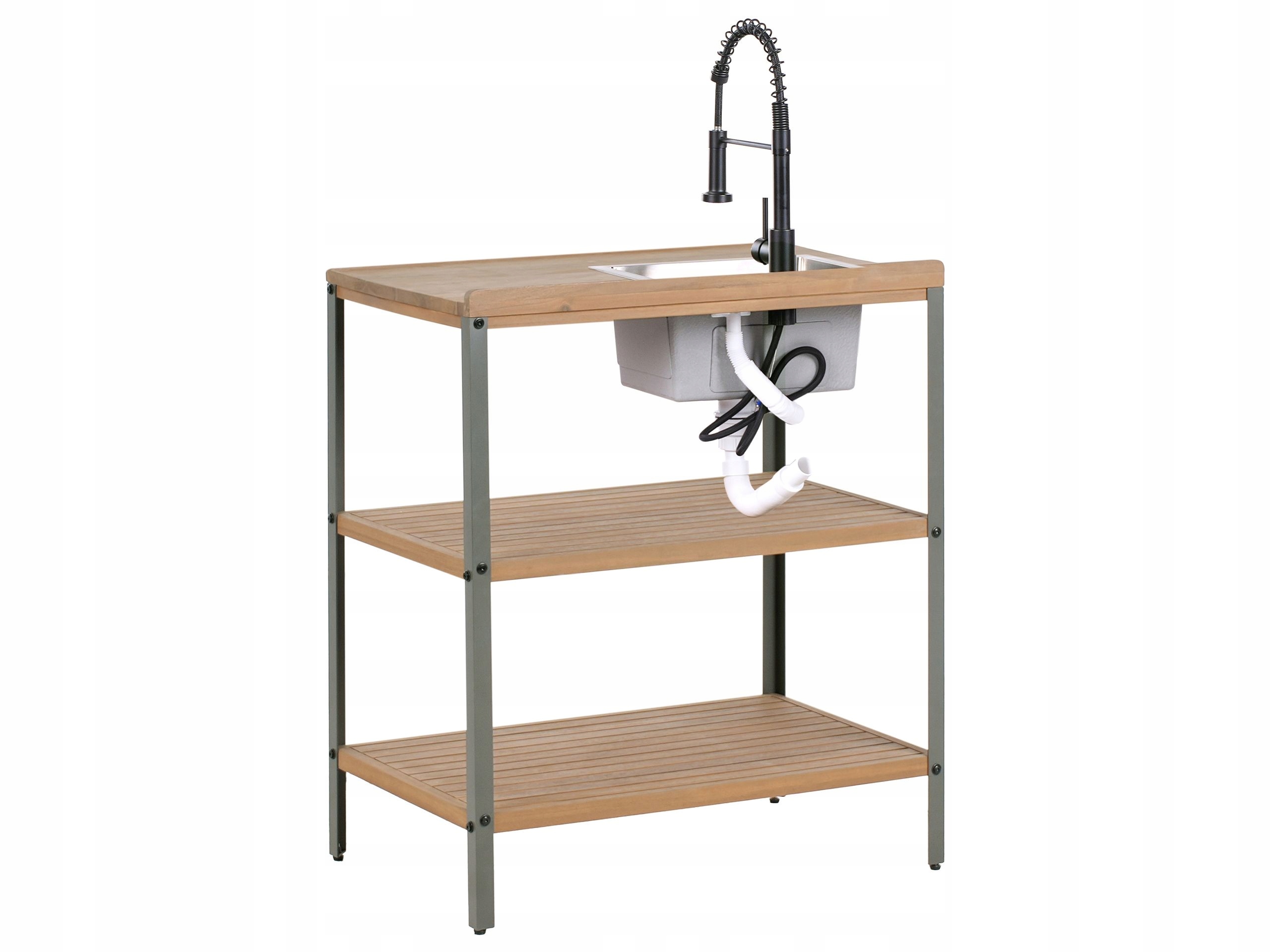 Створіть повністю обладнаний простір для приготування їжі на свіжому повітрі завдяки цьому стильному кухонному наборі, який містить три кухонні острови, включаючи одну з раковиною. Кожен виготовлений з міцної деревини акації та підтримується суцільною металевою рамкою, пропонуючи просторі вершини для приготування, подачі страв та промивання інгредієнтів. Це ідеальне поєднання практичного зберігання та стилю під час садових зустрічей.