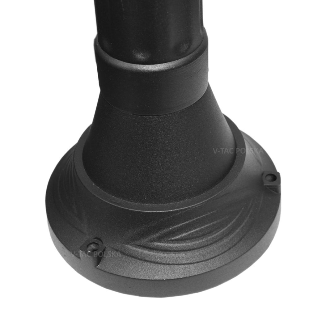 Масивний і стильний садовий світильник - незамінний елемент будь-якої ділянки або парку. Ліхтар з двома незалежними плафонами дозволяє встановити лампочки з великою різьбою Е27 (максимальний розмір Ø 60х110 мм). Прозора кришка виготовлена з ударостійкого пластику. Корпус світильника суцільний литий алюміній з товщиною стінки 5 мм - загальна вага світильника 4,5 кг. Завдяки класу герметичності IP44 ліхтар стійкий до погодних умов. Основа кріпиться до землі за допомогою трьох гвинтів. Загальна висота 1410 мм, діаметр 480 мм.