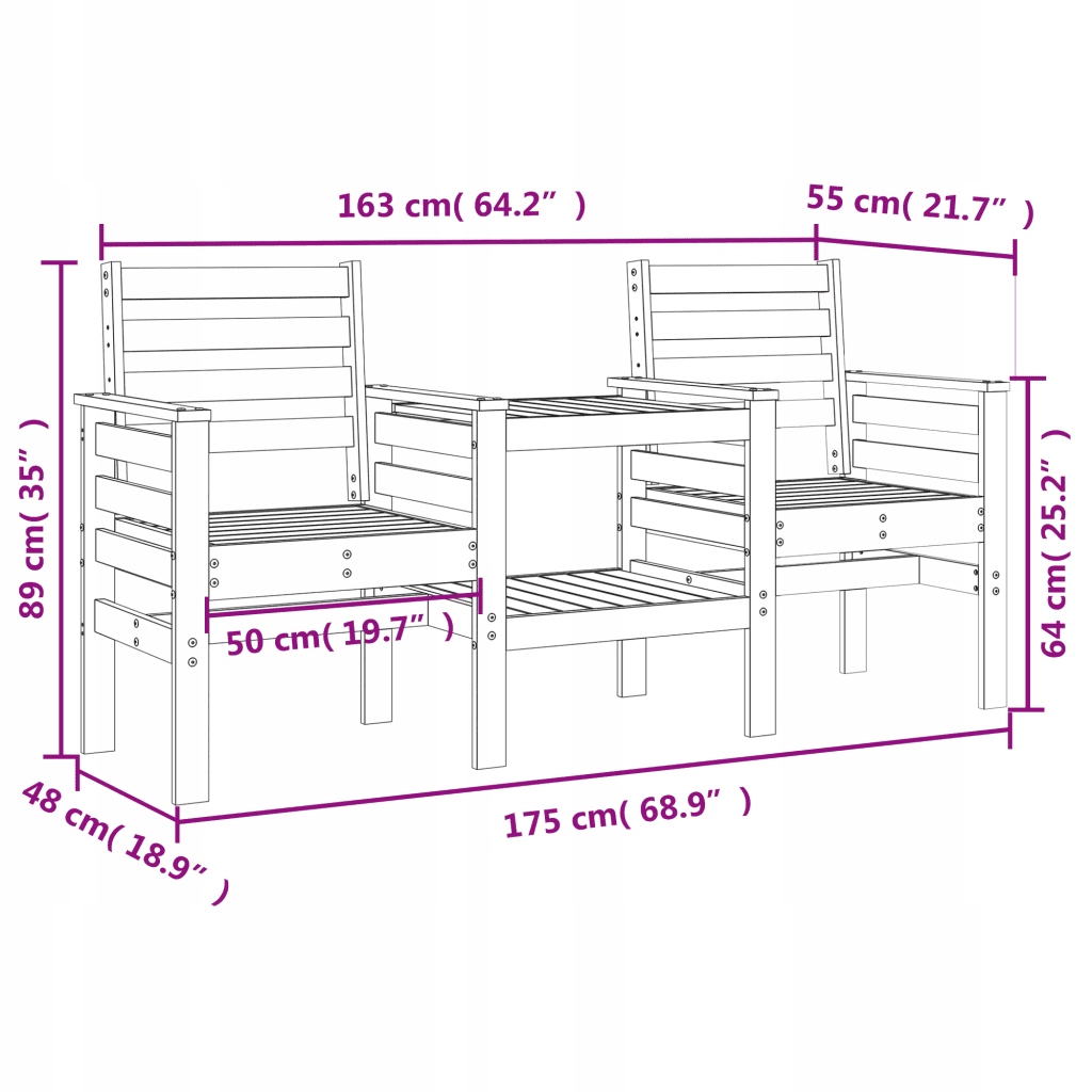 Лава садова 2-місна зі столиком, медово-коричневий, сосна